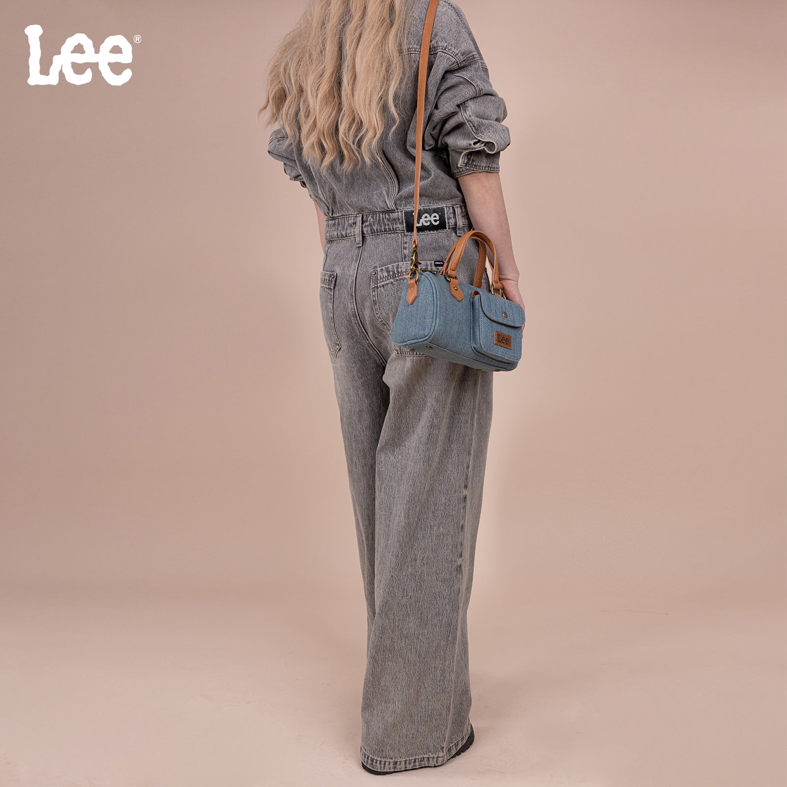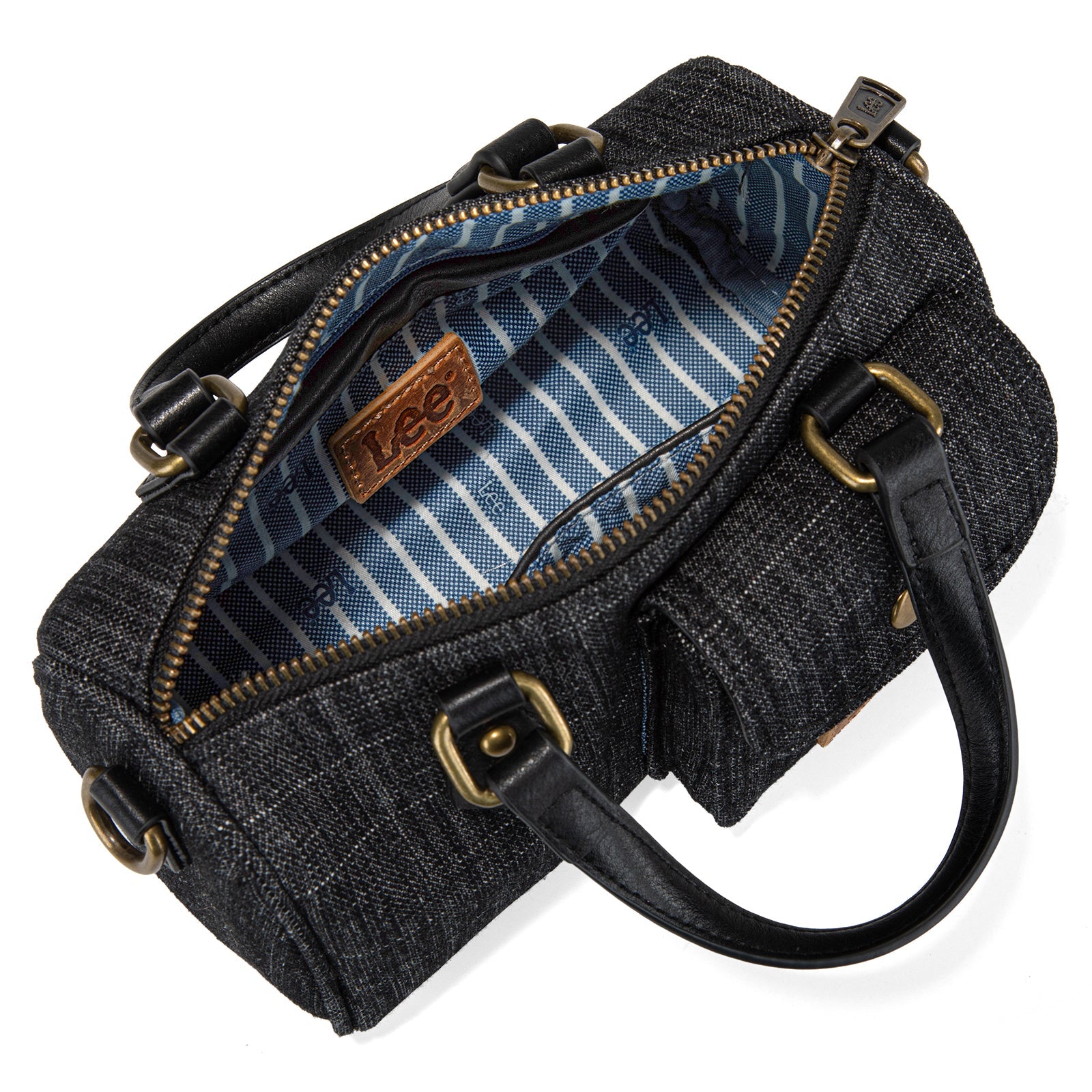 LEE58-001 LEE Denim Canvas Barrel Satchel Top Handle Crossbody Bag