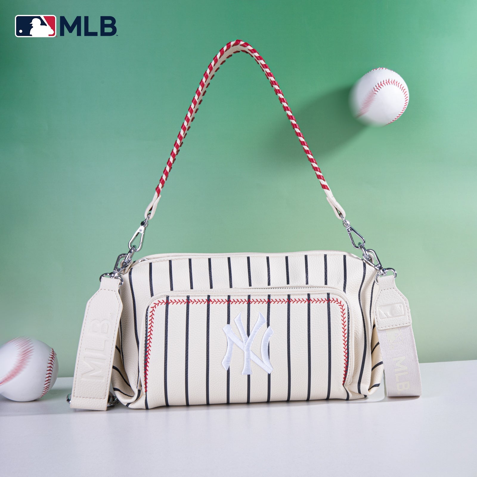 - Adjustable/detachable MLB logo print canvas crossbody strapÂ