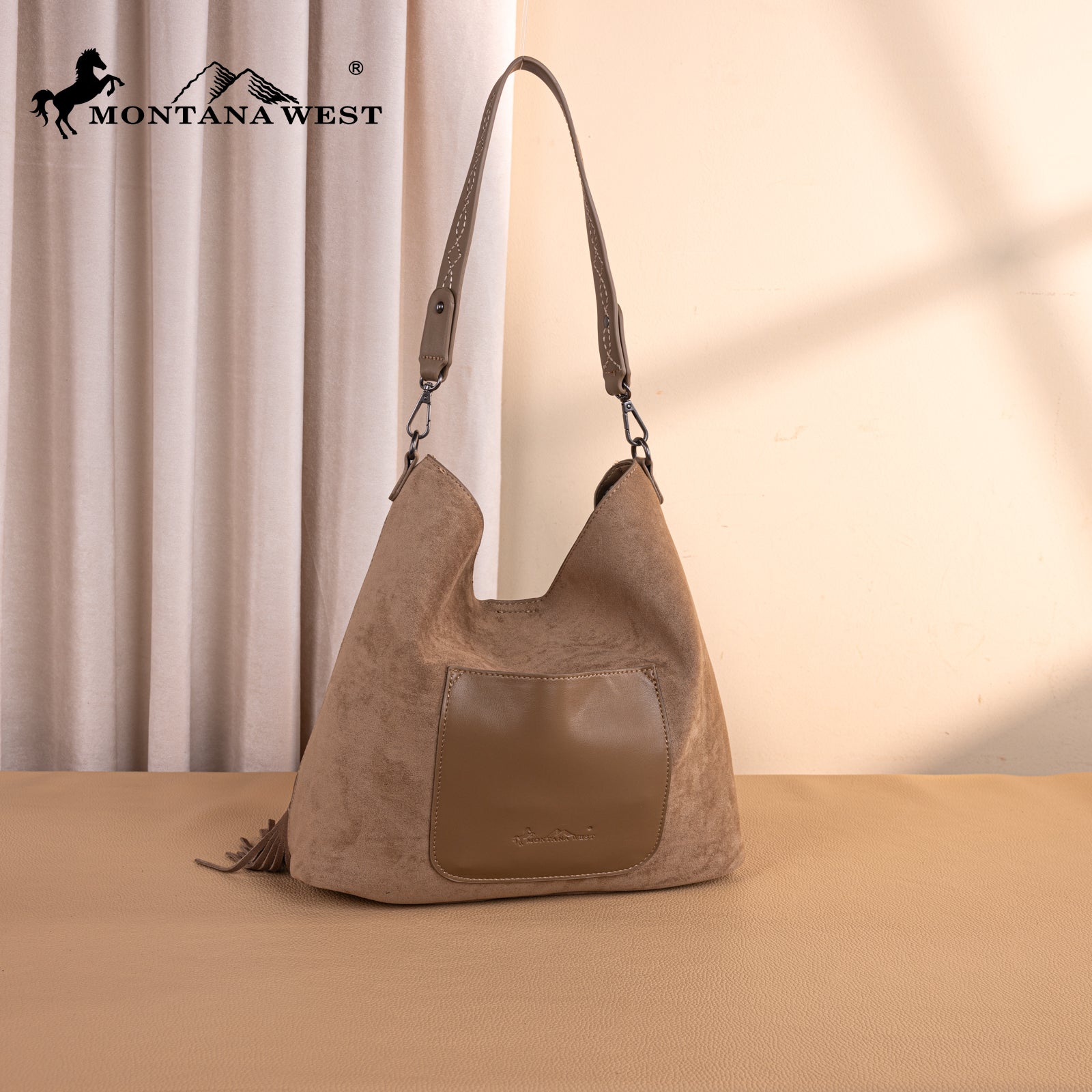MW1341-918 Montana West Boot Stitch Fringe Hobo Bag