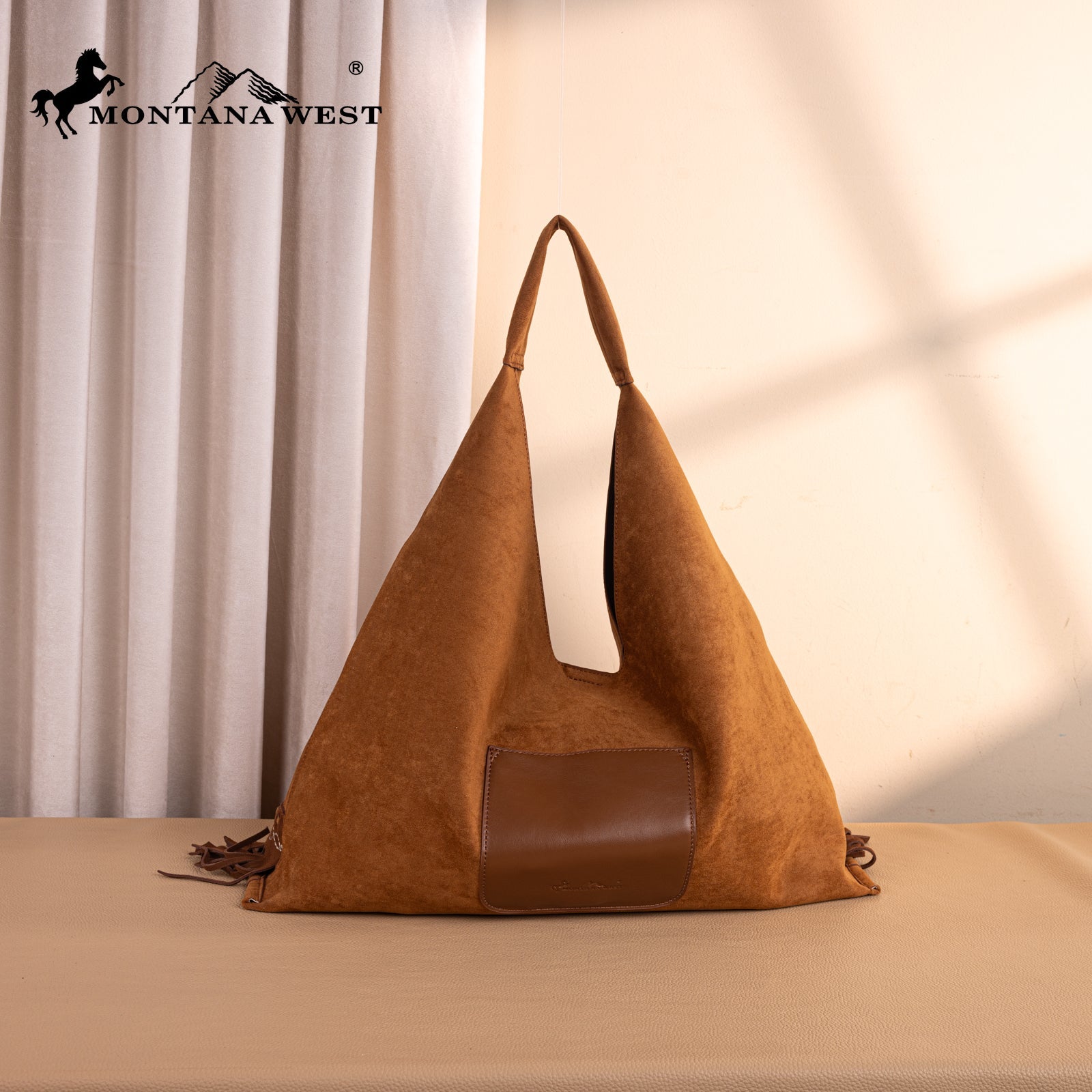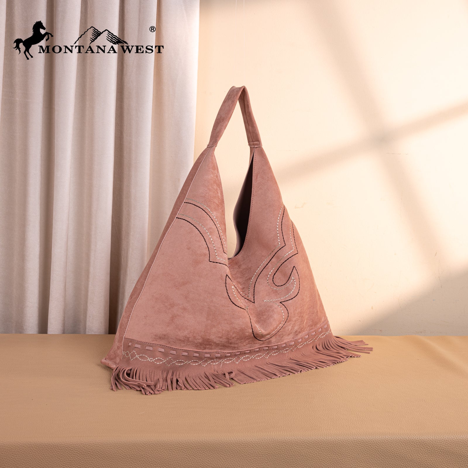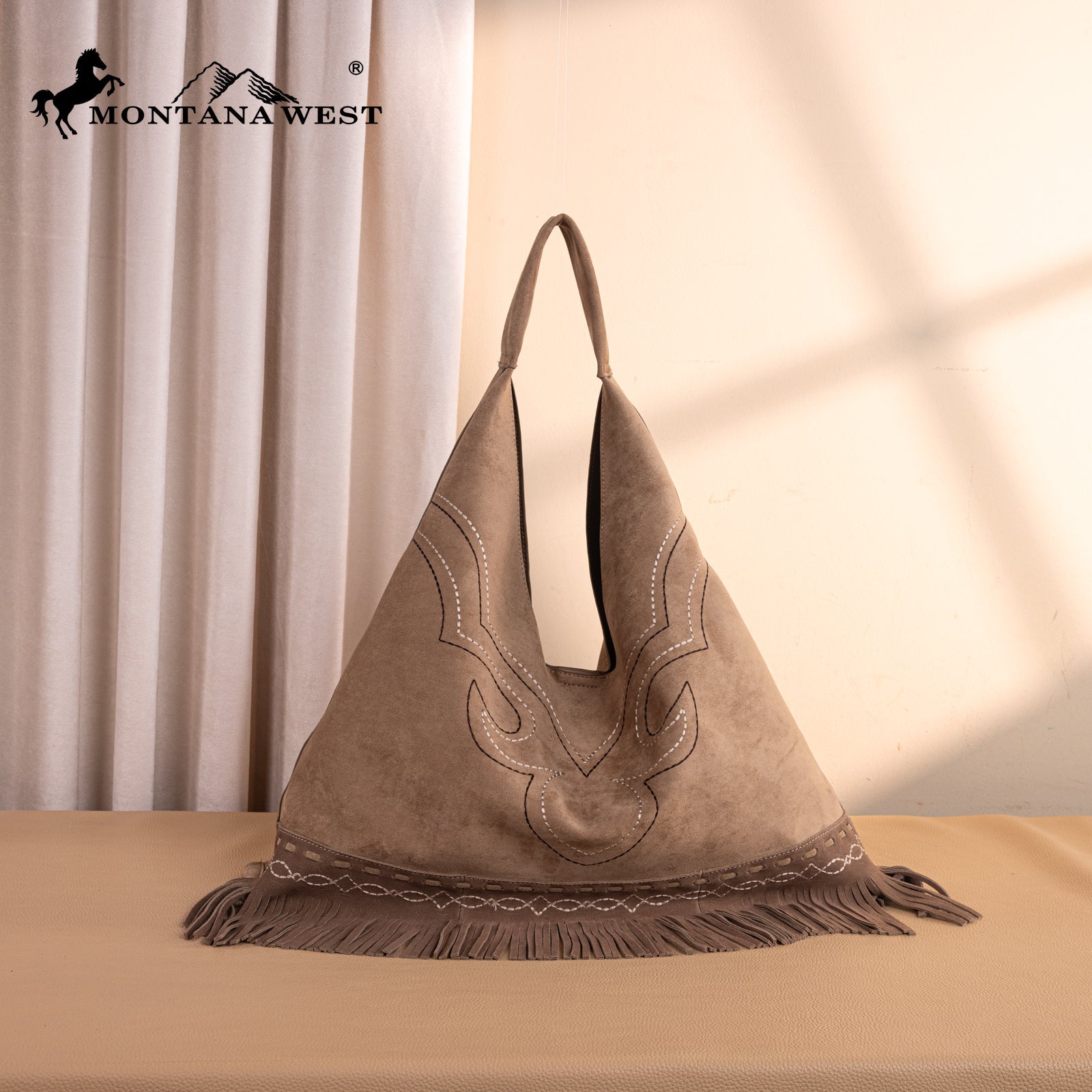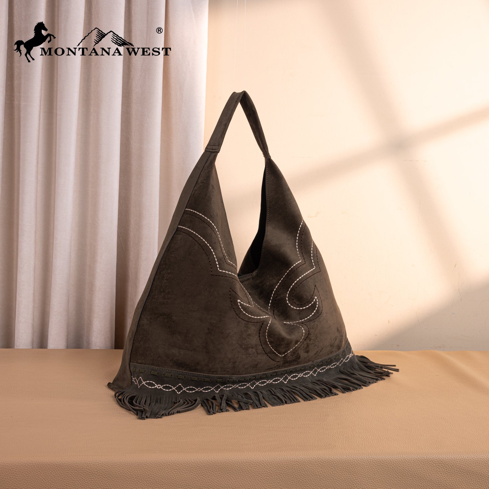 MW1341-9182 Montana West Boot Stitch Fringe Large Hobo Bag