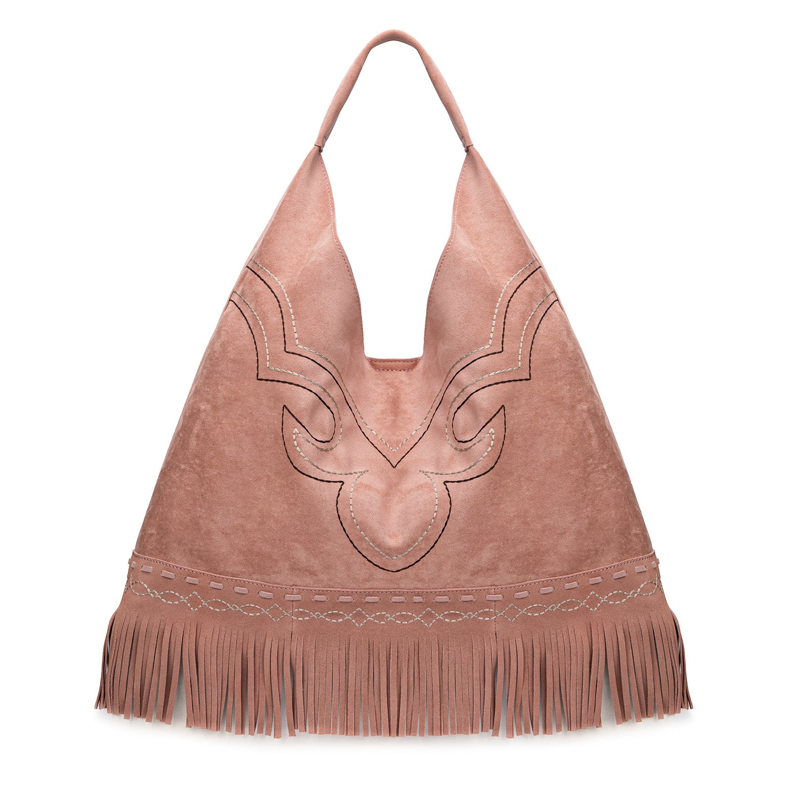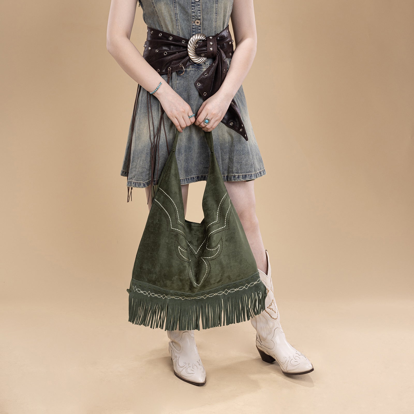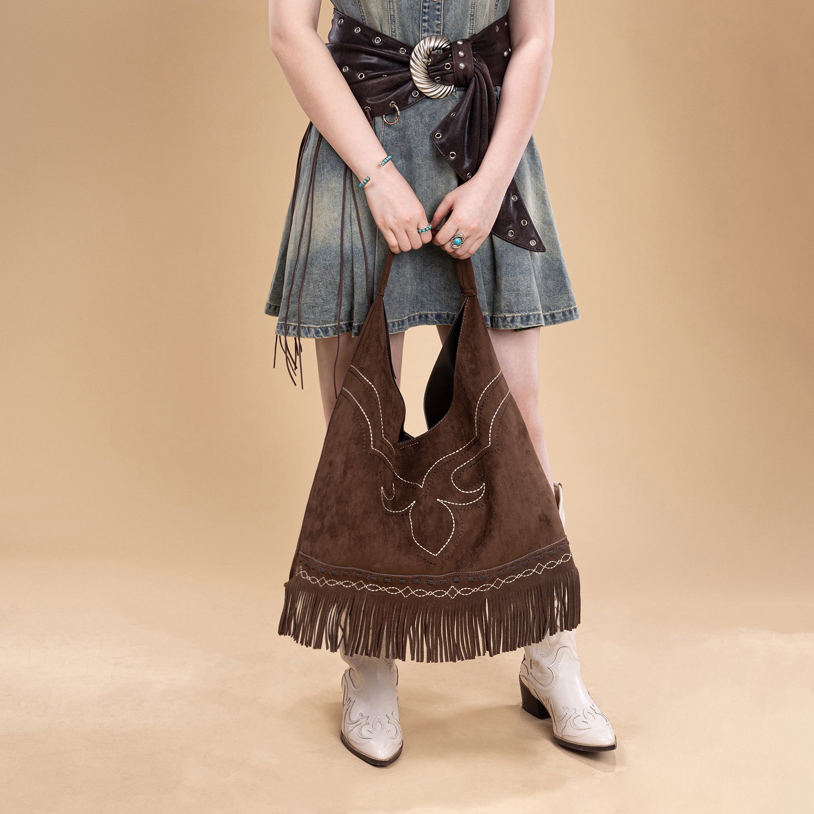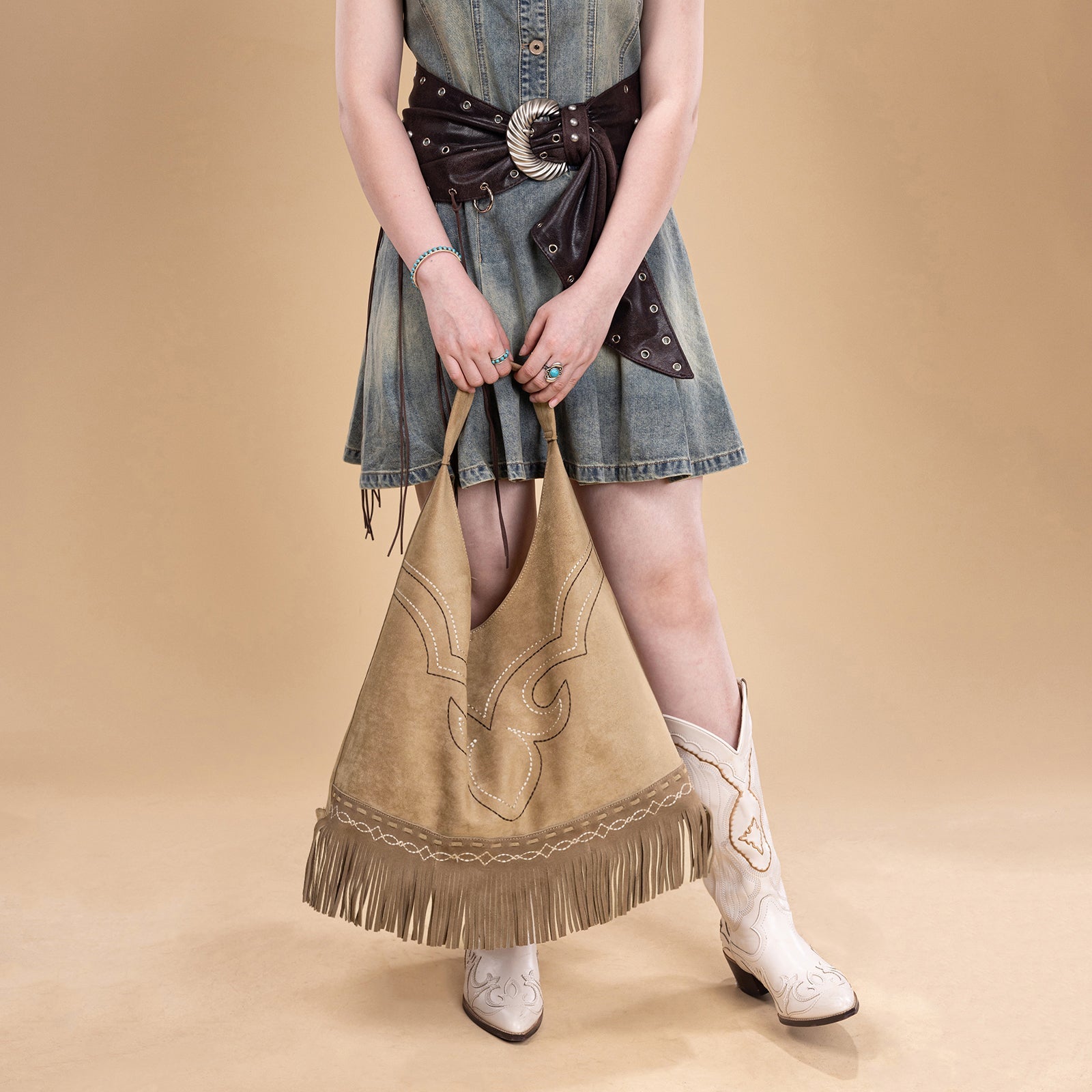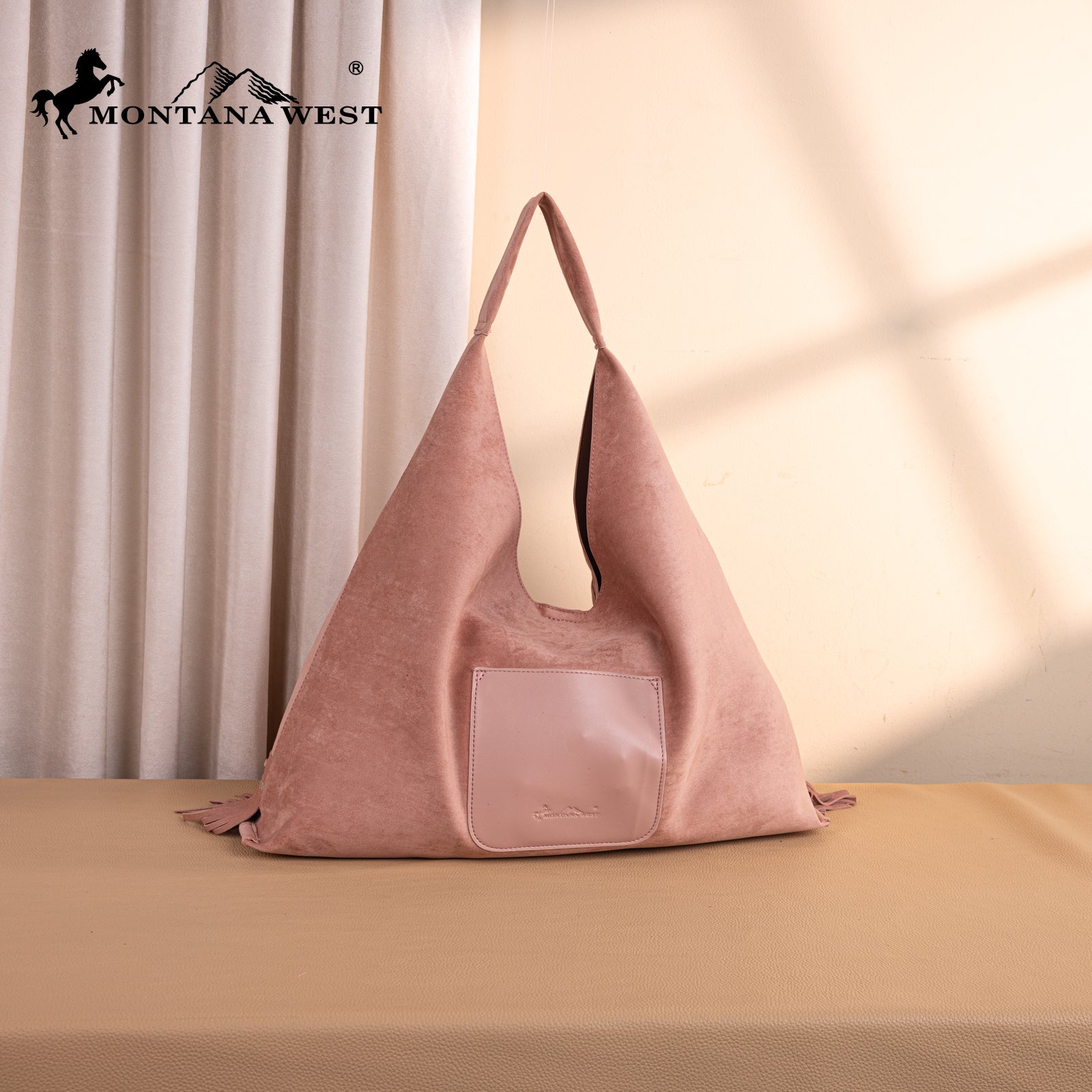 MW1341-9182 Montana West Boot Stitch Fringe Large Hobo Bag