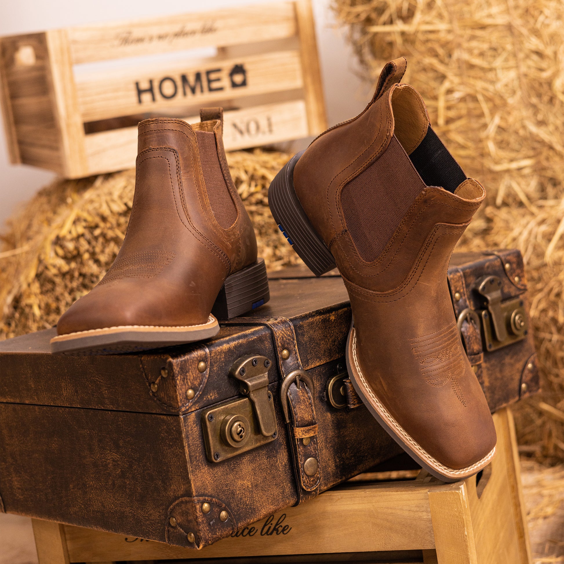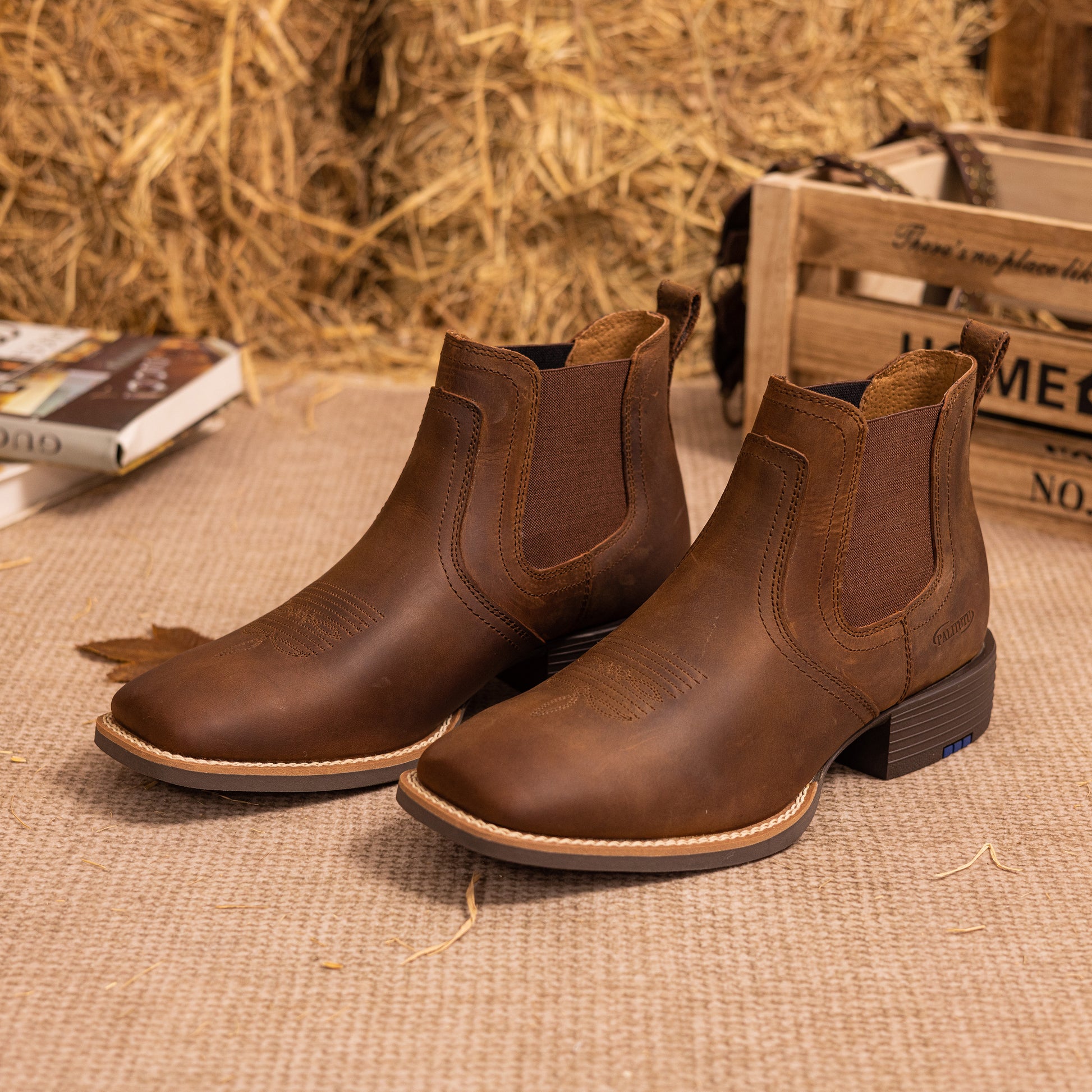 - WESTERN CHELSEA STYLE: These men’s western boots blend cowboy spirit with Chelsea simplicity. The pull-on design with elastic gores makes them easy to wear, while the sleek profile fits perfectly with slim jeans or work pants—ideal from ranch to city