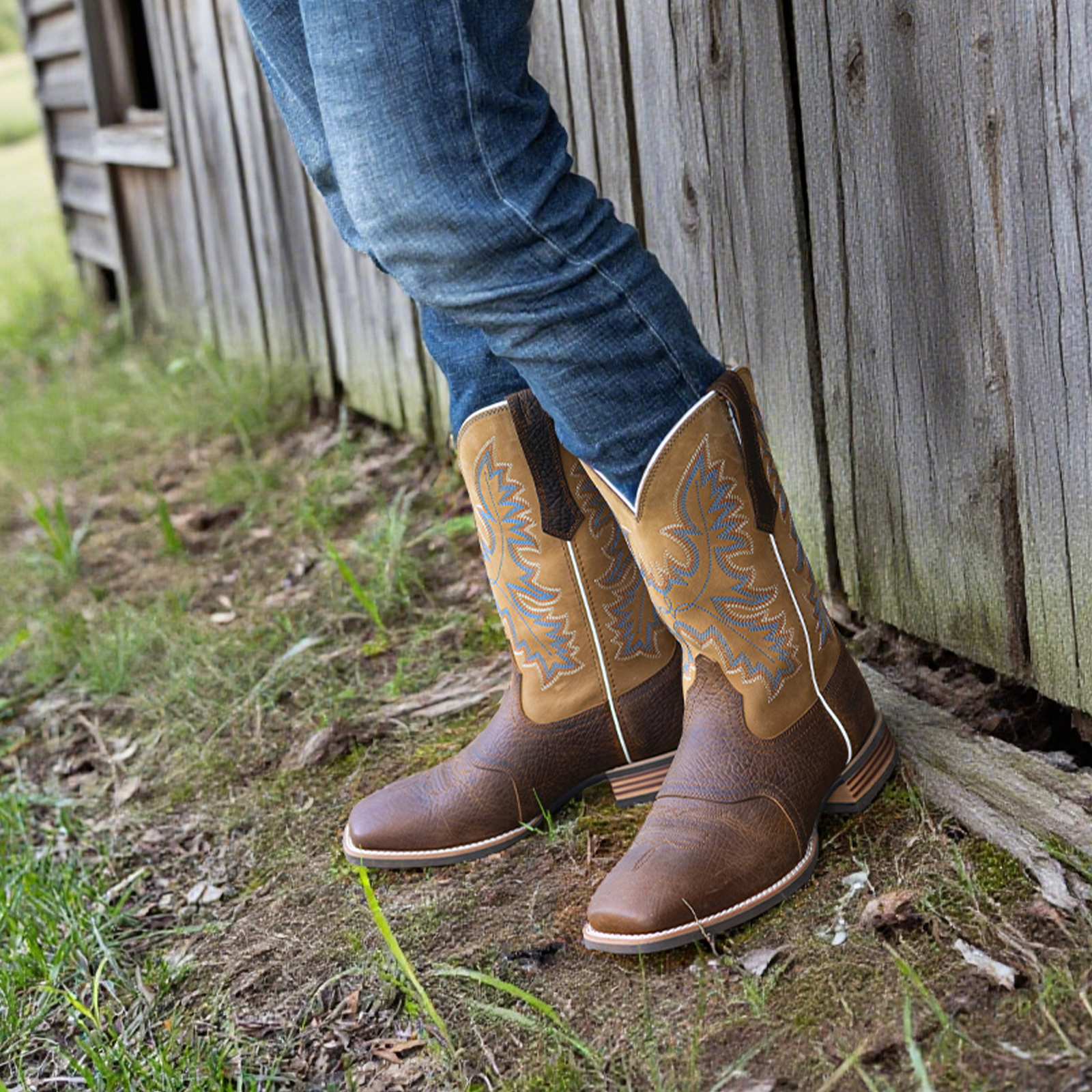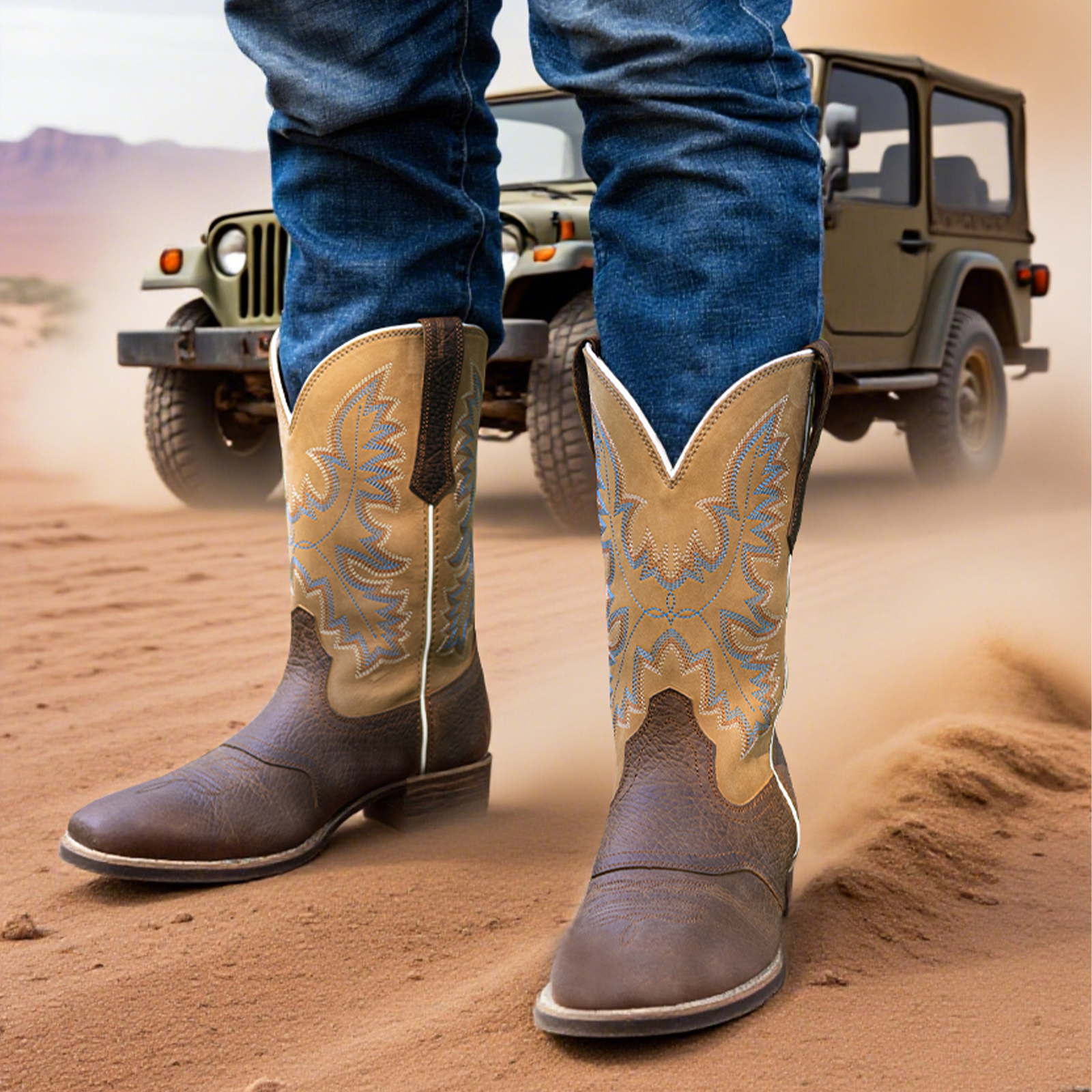 Palitutu PLT103608 Men's Western Cowboy Boots - Full Grain Leather, Square Toe