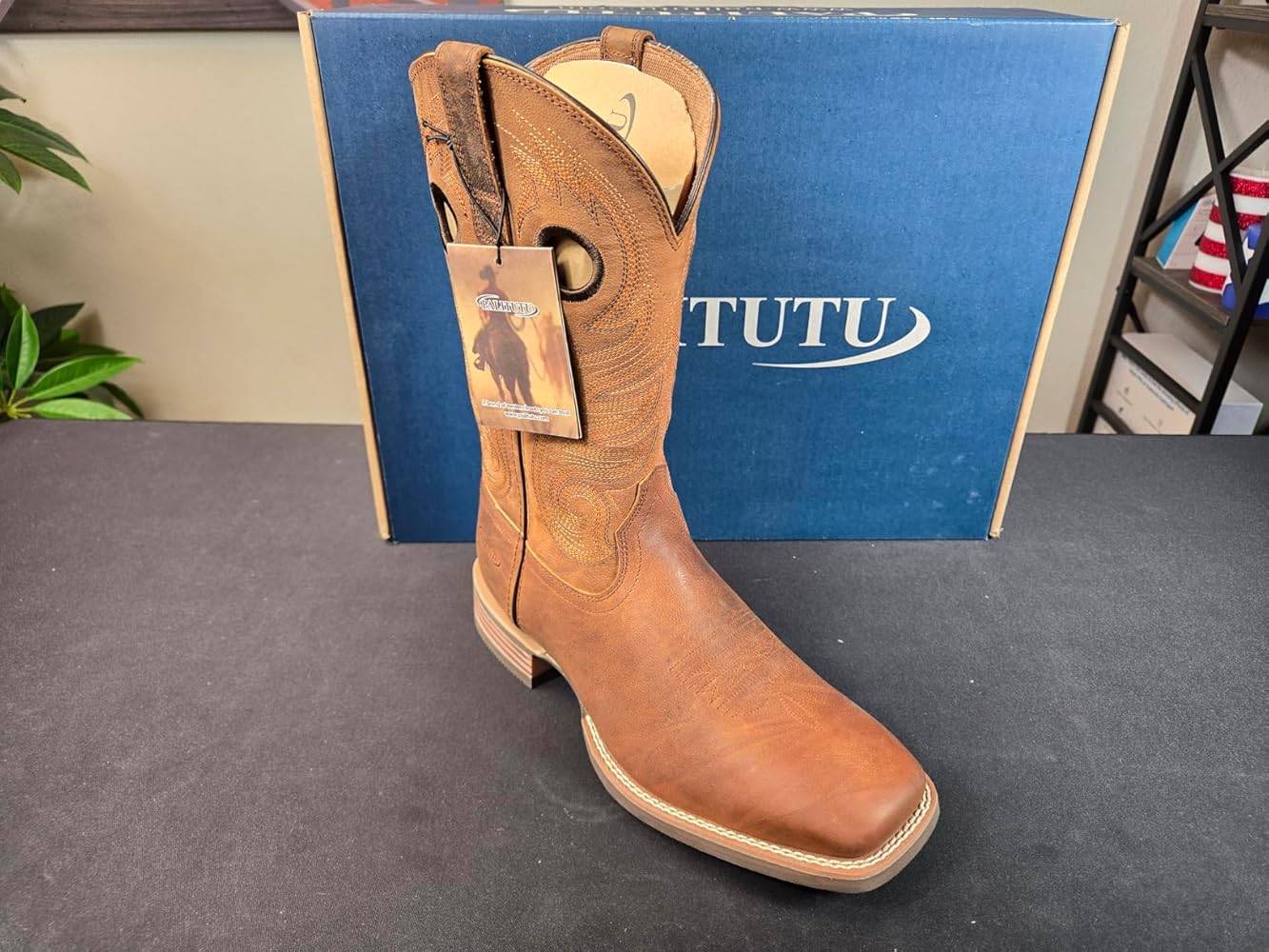 Palitutu PLT103614 Men's Western Cowboy Boots - Full Grain Leather, Square Toe