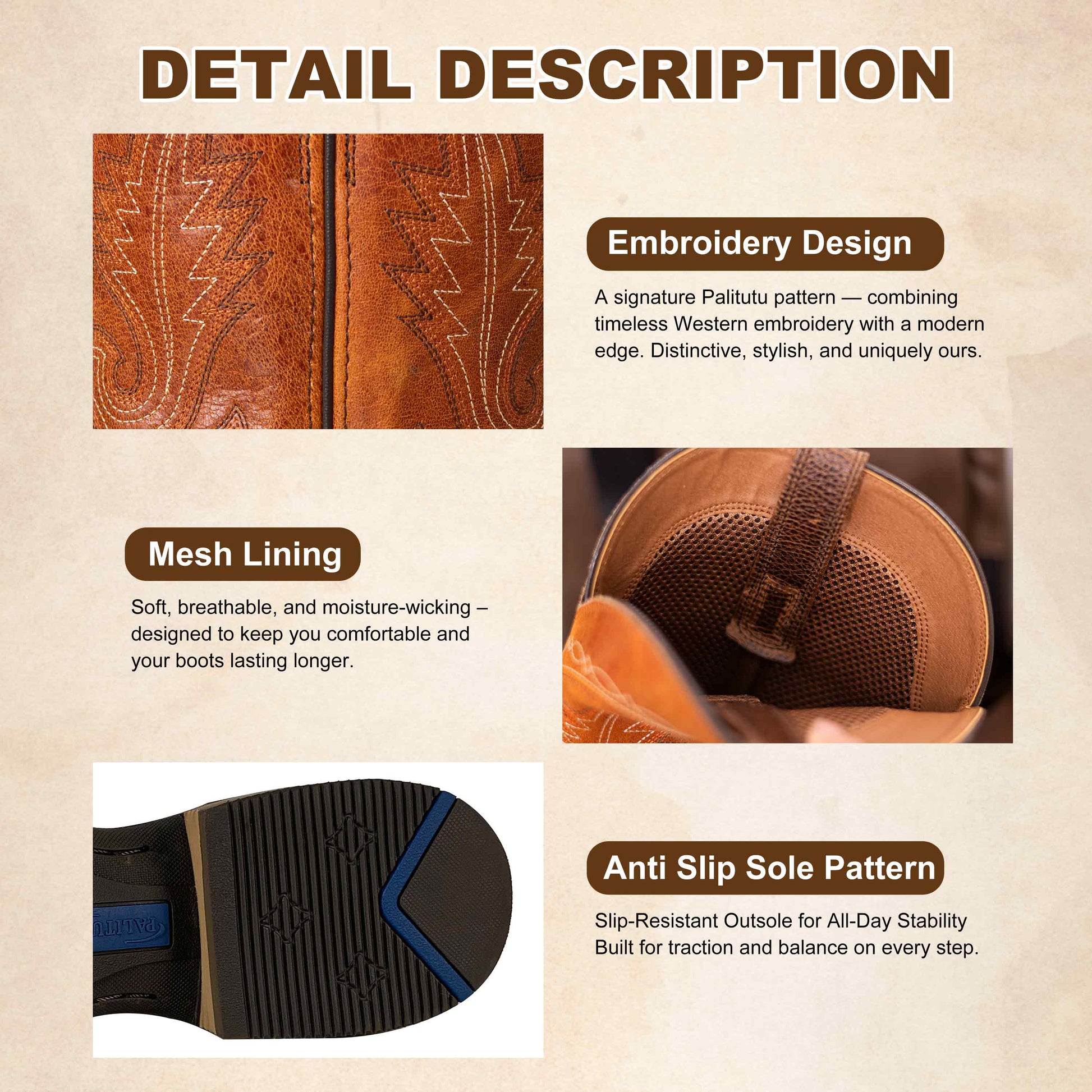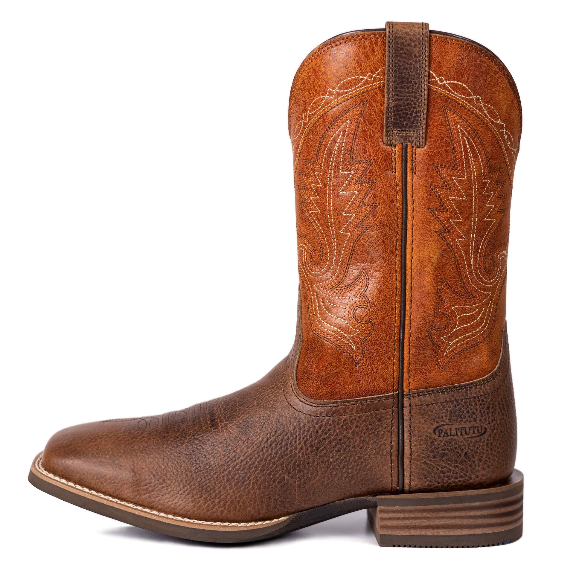 Palitutu PLT103617 Men's Western Cowboy Boots - Full Grain Leather, Square Toe