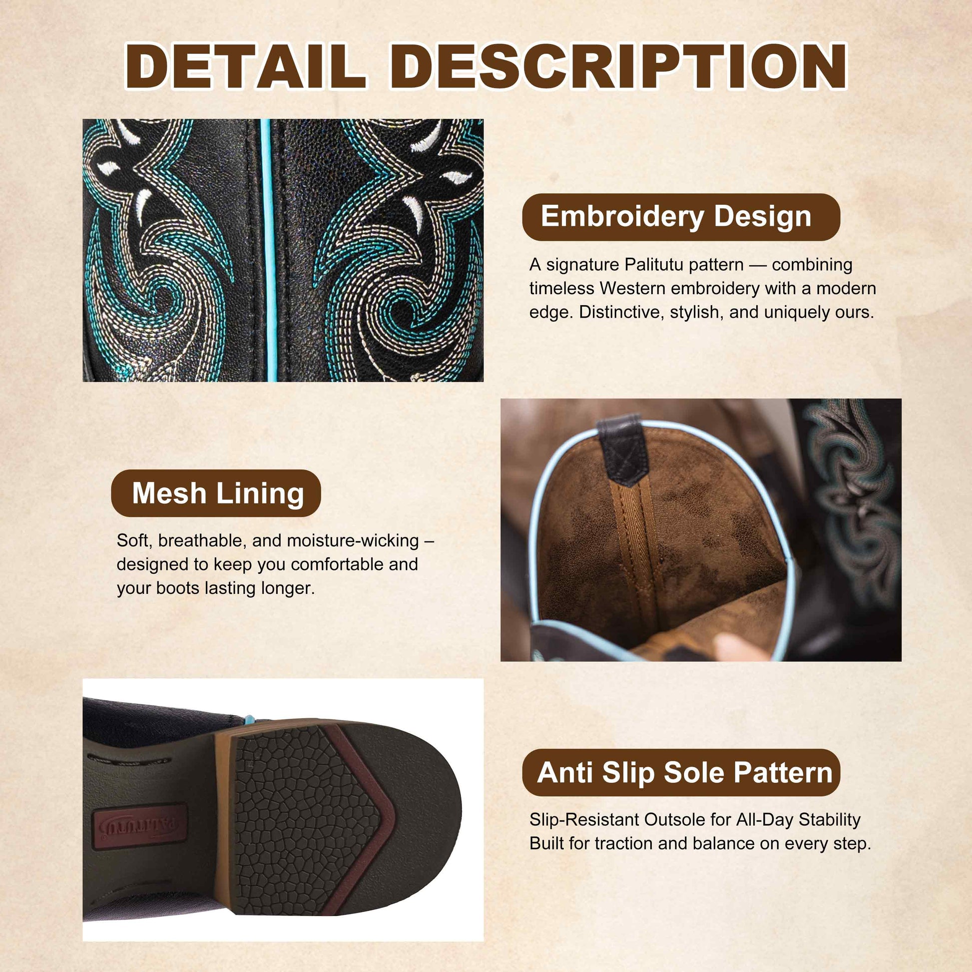 Palitutu PLT203604 Women's Western Cowgirl Boots - Full Grain Leather, Square Toe