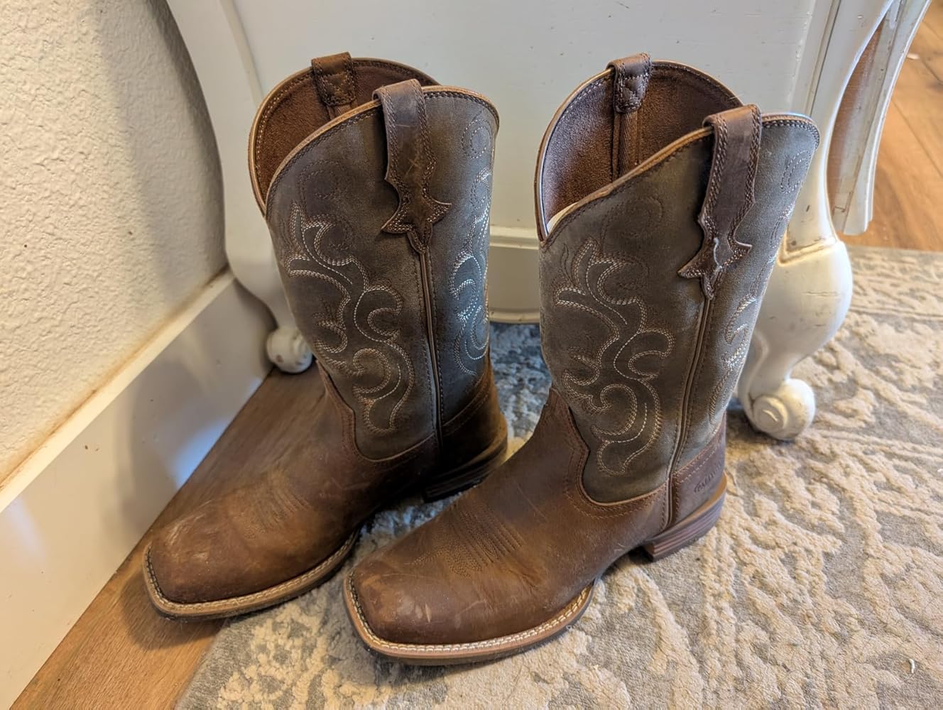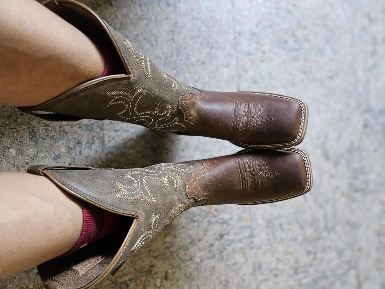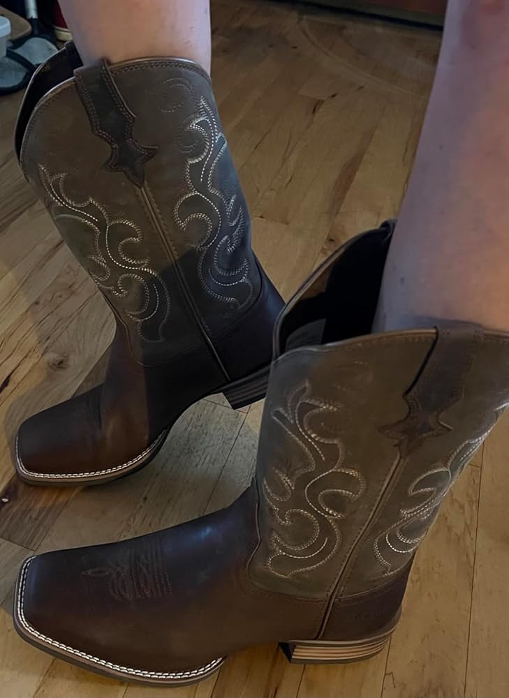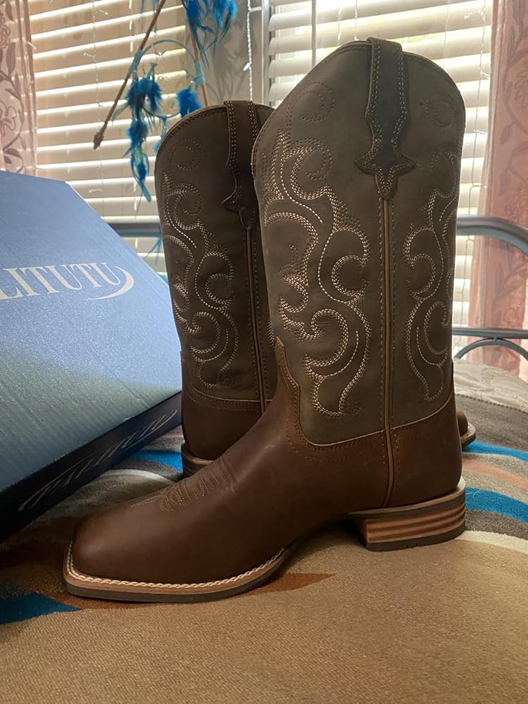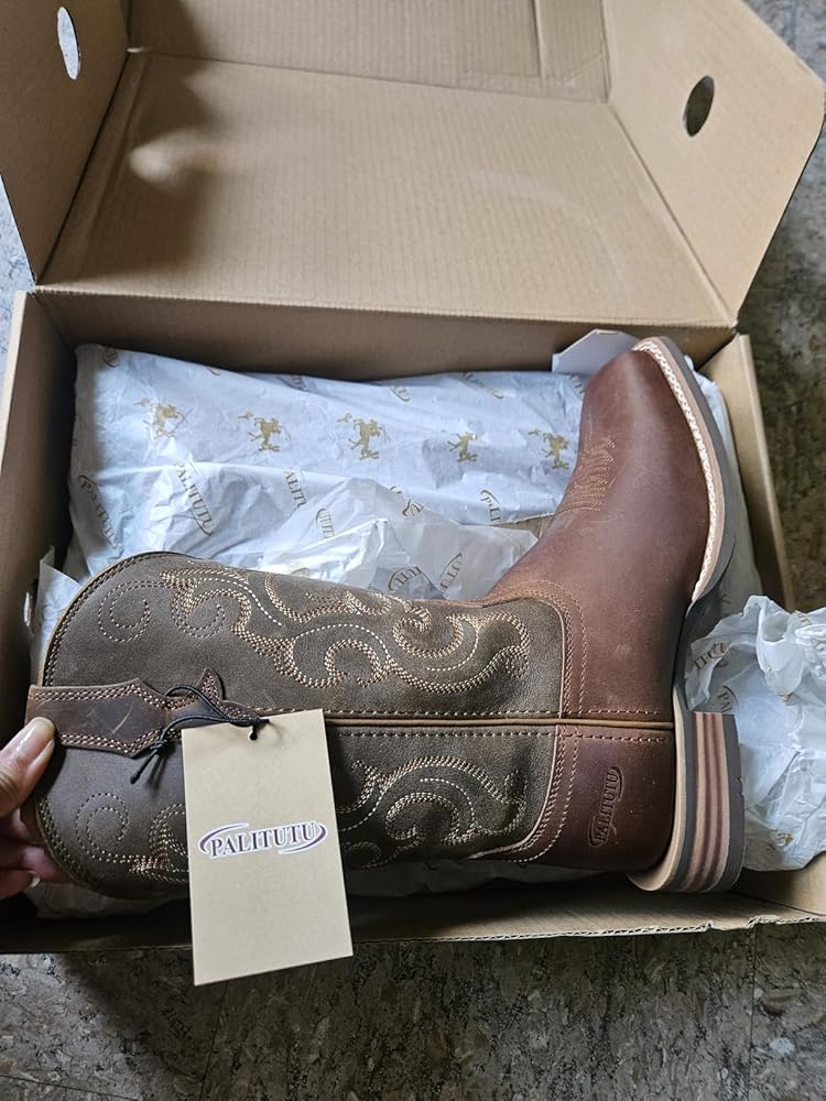 I own a pair of sparkle-glam boots for going out dancing, but around the farm I usually wear tennis shoes or rain boots. I’ve been in need of a good pair of casual boots, and these are absolutely perfect. The quality is outstanding. I hadn’t heard of this brand before, so I was a little hesitant, but after wearing these boots for several weeks, I’m completely sold. I even purchased a pair for my husband, who is quite the boot connoisseur, and he’s impressed as well.First and foremost, they are incredibly comfortable. The sizing is accurate; according to the measurement chart, I fell between a 7.5 and an 8. I chose the 7.5, knowing that genuine leather stretches with wear, and I’m glad I did. After breaking them in, they fit perfectly, even with thick socks.The boots feature embroidered pull holes, which make them easy to slip on without causing any irritation to the calf. I also love the square toe design. While pointed toes may be stylish, they aren’t practical for extended wear. The square toe offers superior comfort and supports better foot and posture health.The leather is thick, and both the stitching and construction feel durable. Another feature I appreciate is the rubber sole. It provides excellent grip, especially in farm conditions, unlike traditional leather soles.Overall, I have nothing but praise for these boots. They are beautiful, comfortable, affordable, and practical, all in one.