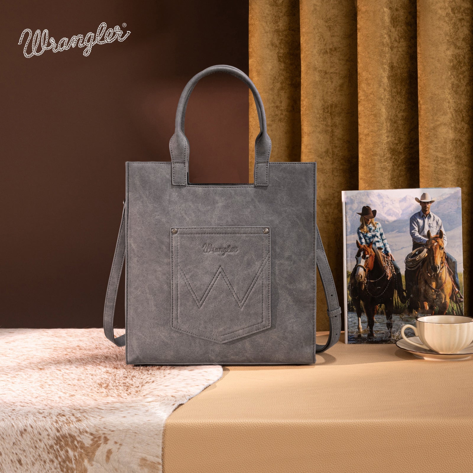 WG218-8900 Wrangler Aztec Embroidered Tote Bag/Crossbody- Black