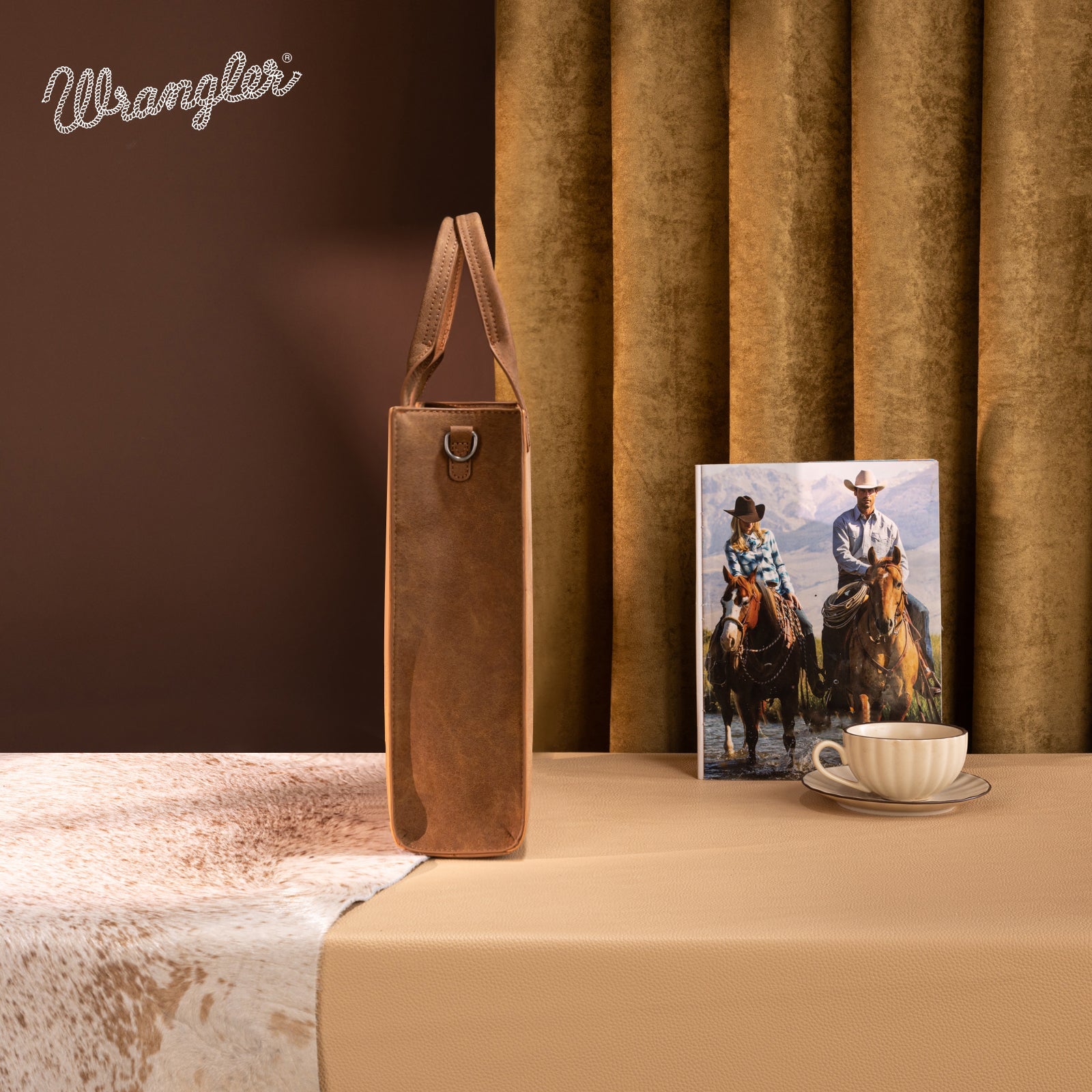 WG218-8900 Wrangler Aztec Embroidered Tote Bag/Crossbody- Brown