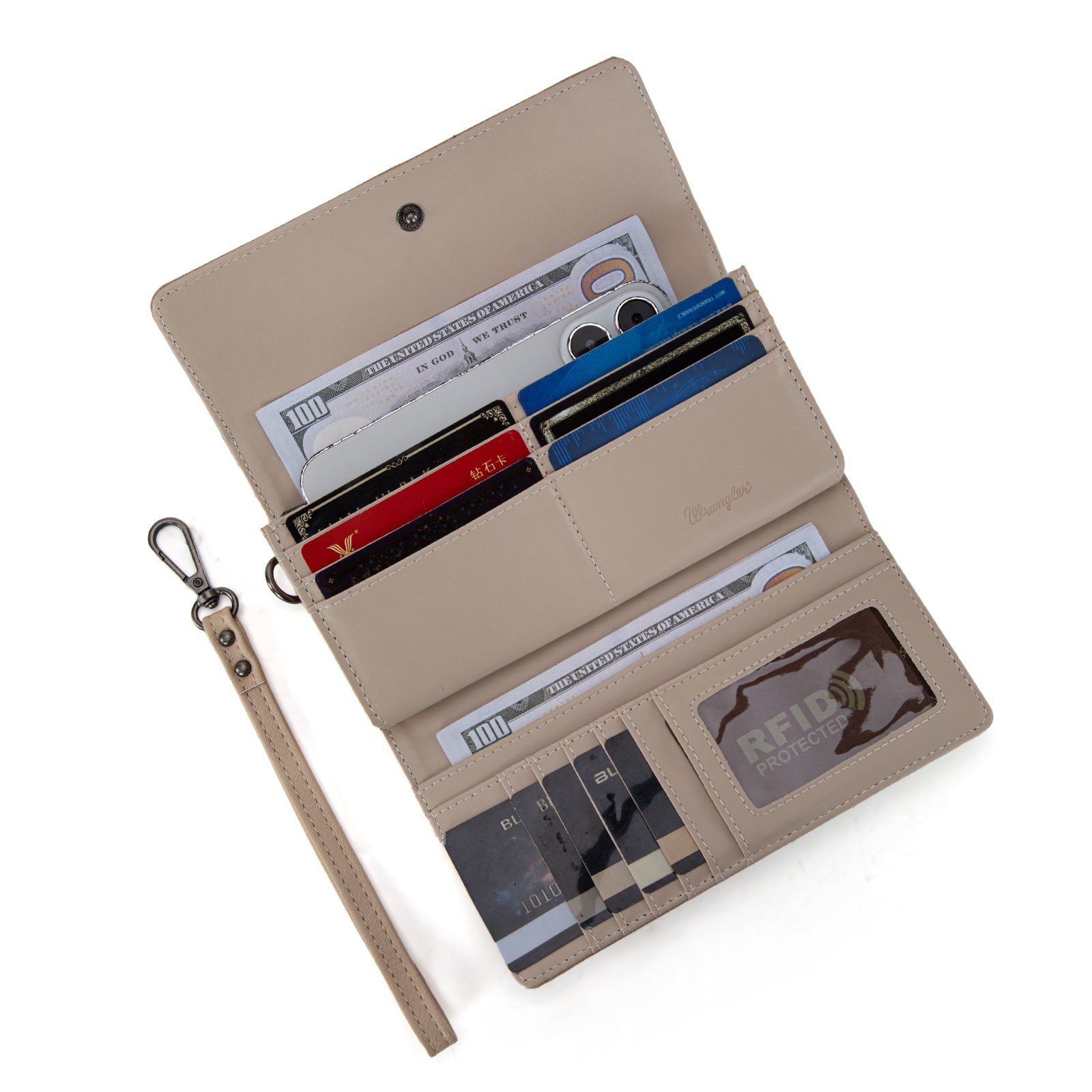 WG218-W068 Wrangler Aztec Embroidered Wallet/Wristlet -Tan