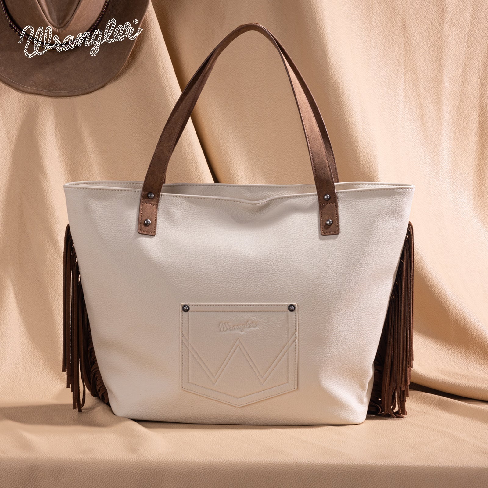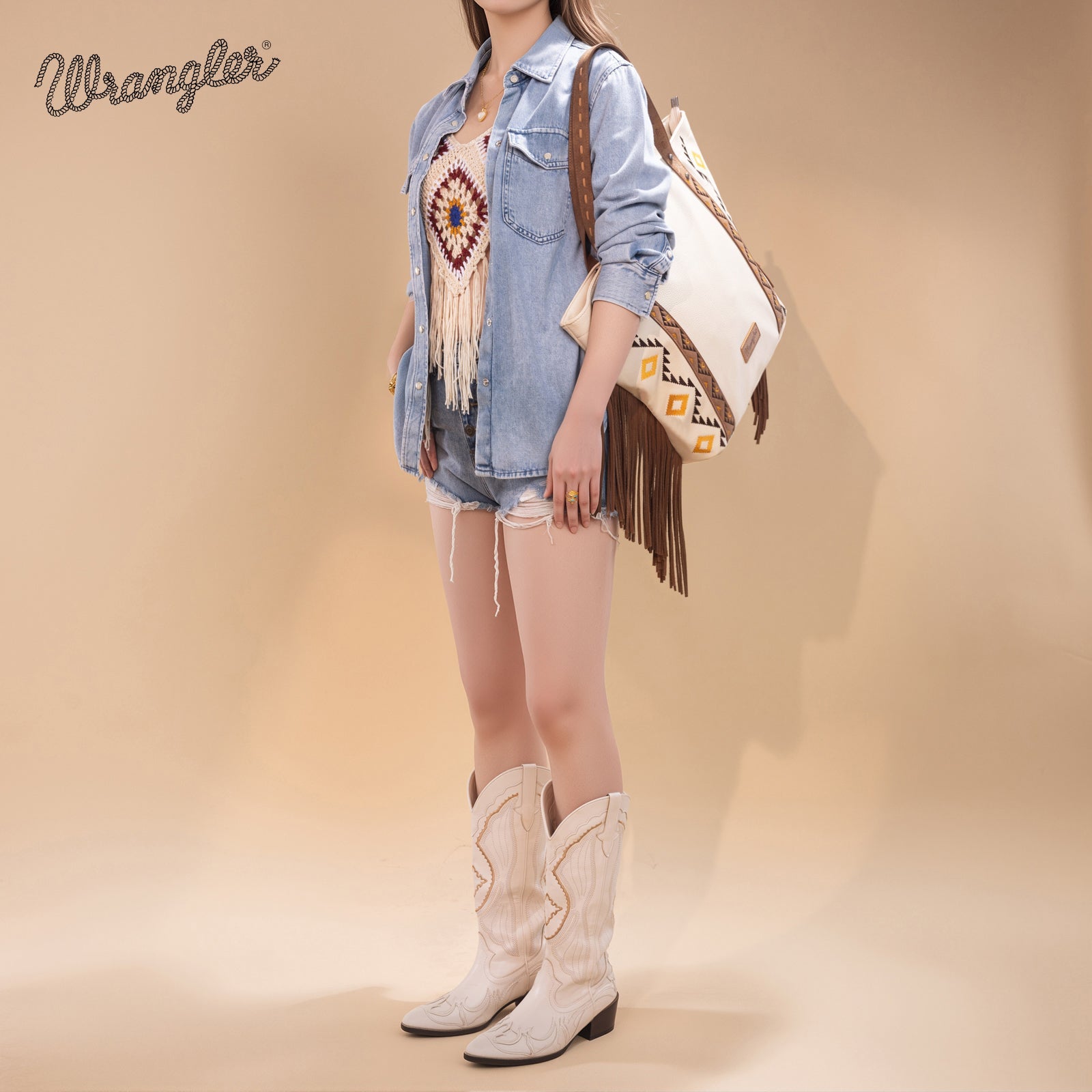 WG233-2002 Wrangler Aztec Embroidered Large Tote Bag- Beige