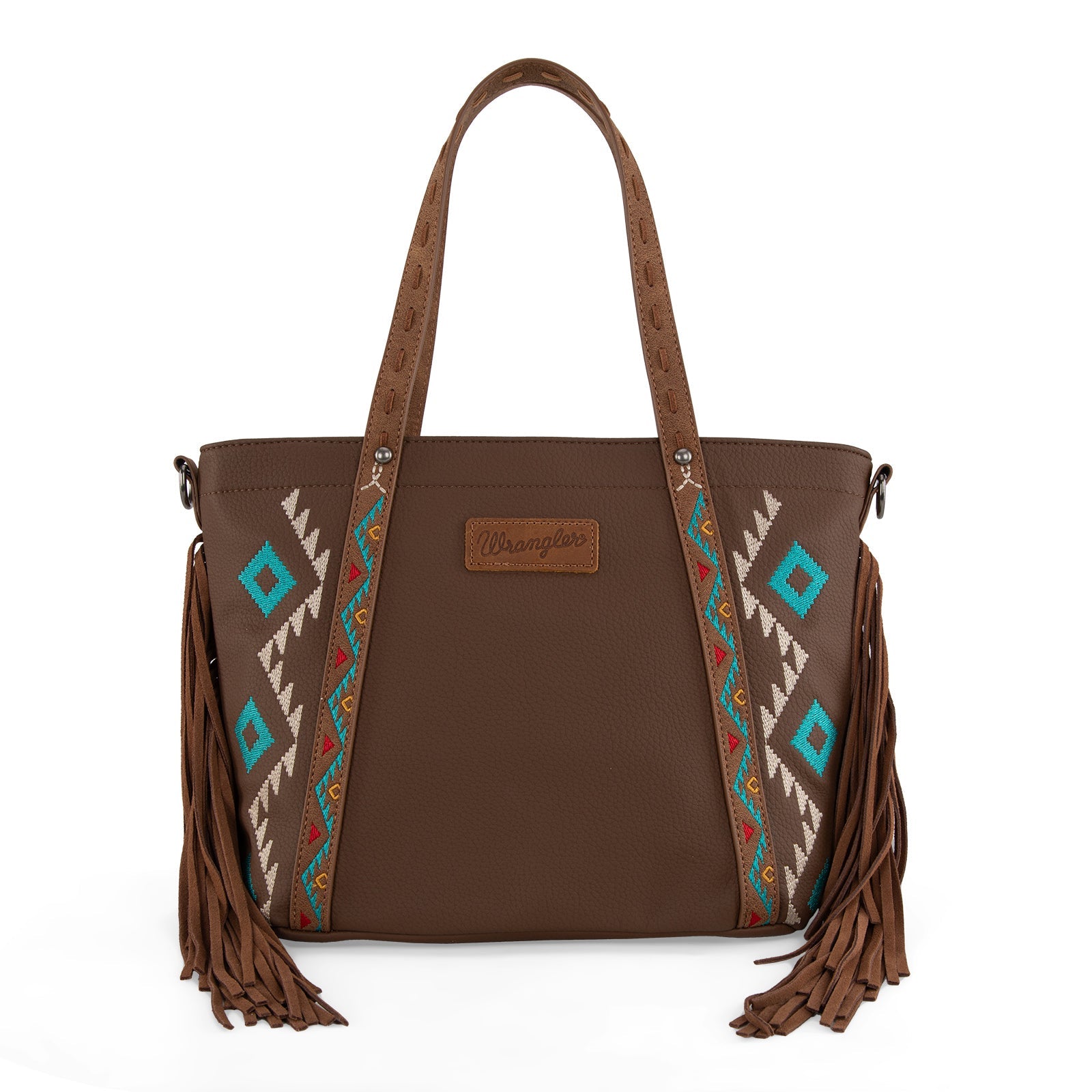 WG233-2009 Wrangler Aztec Embroidered Tote/Crossbody Bag- Brown