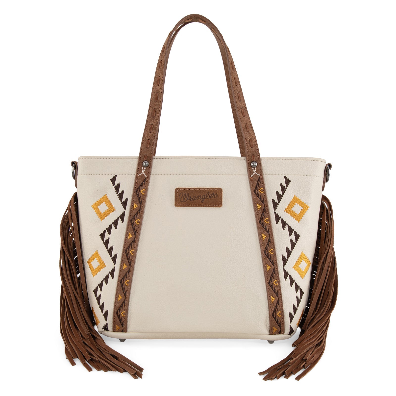 WG233-2009 Wrangler Aztec Embroidered Tote/Crossbody Bag- Beige