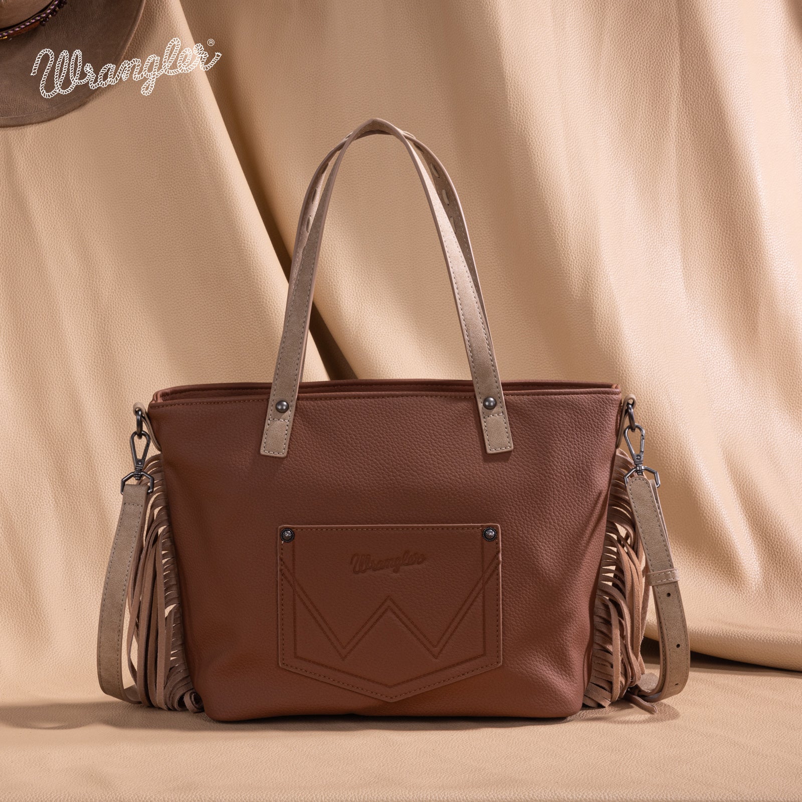 WG233-2009 Wrangler Aztec Embroidered Tote/Crossbody Bag- Light Brown
