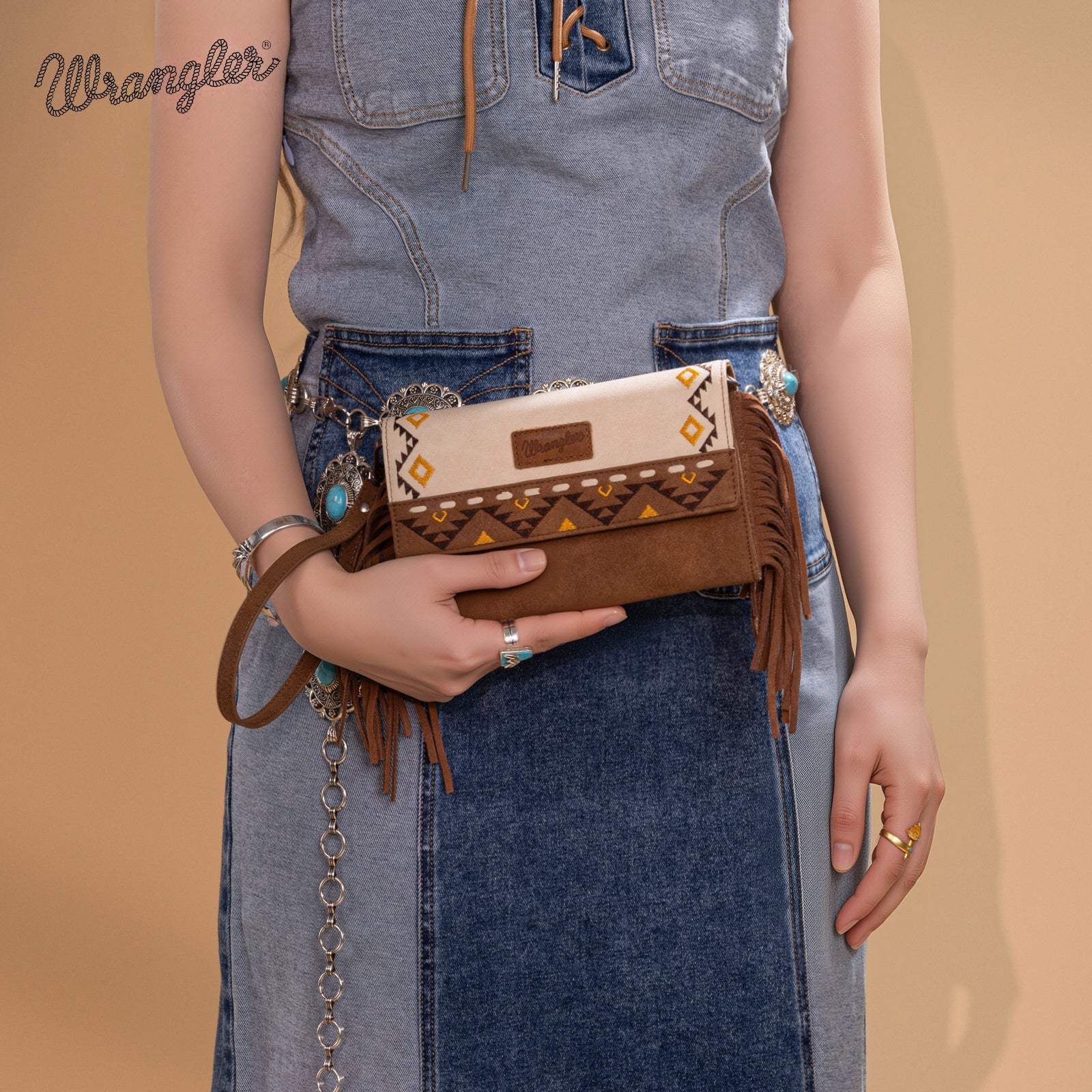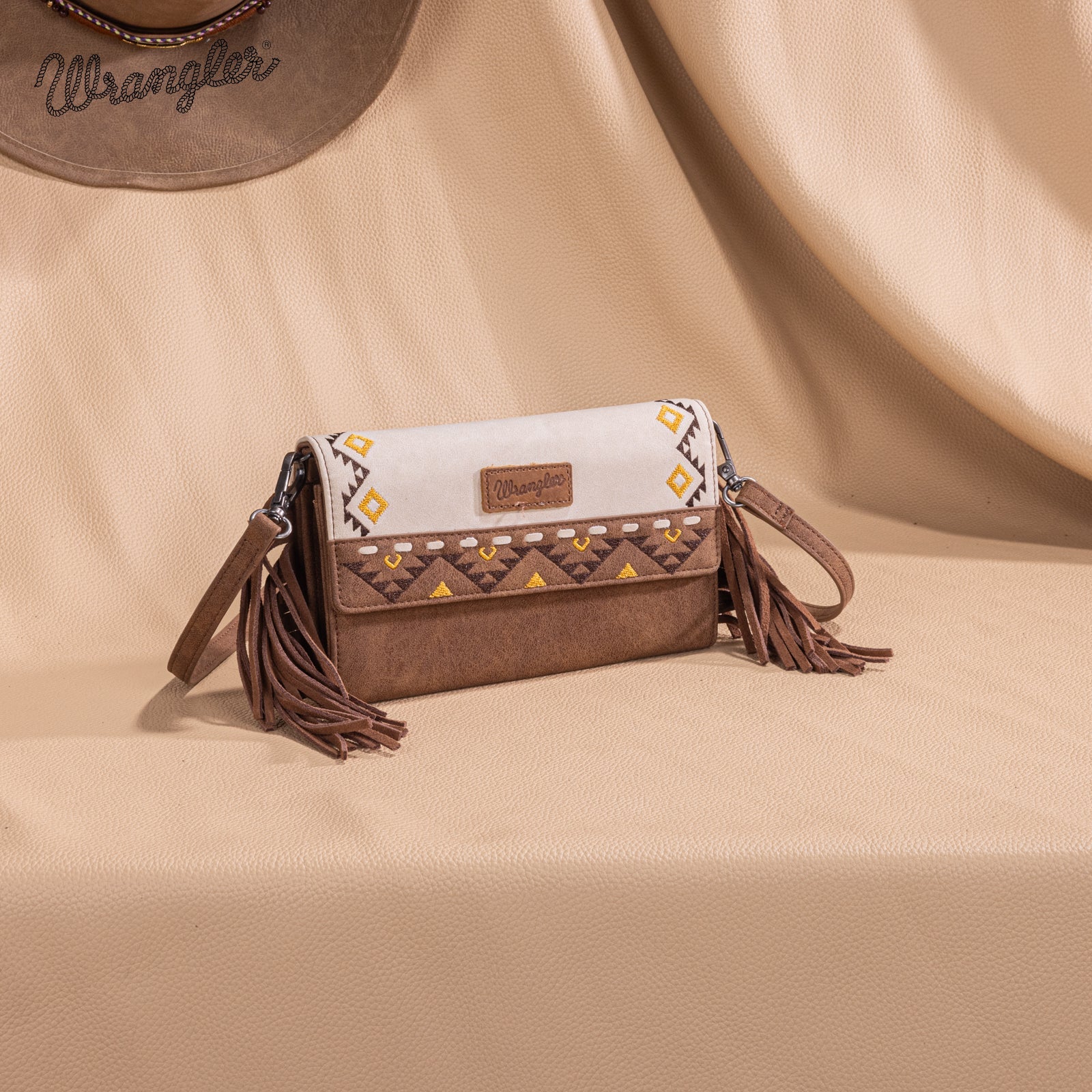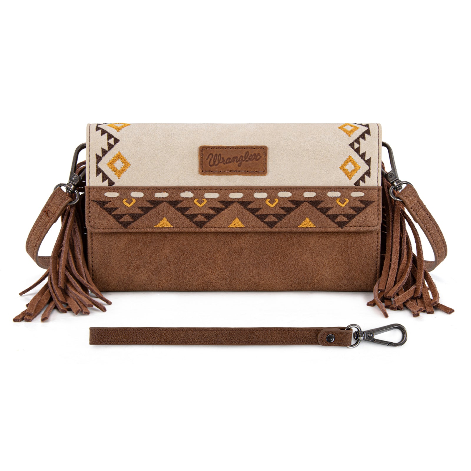 WG233-W018 Wrangler Aztec Embroidered Fringe Wallet/Crossbody -Beige