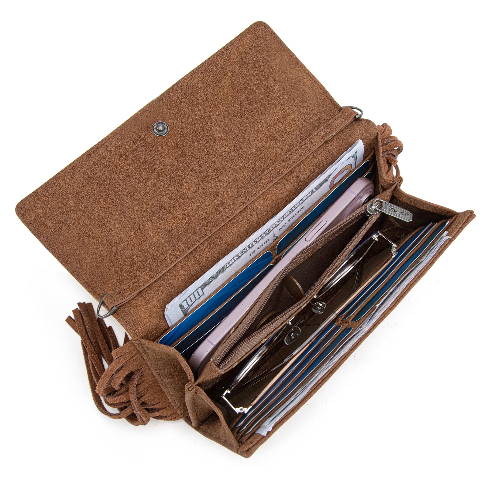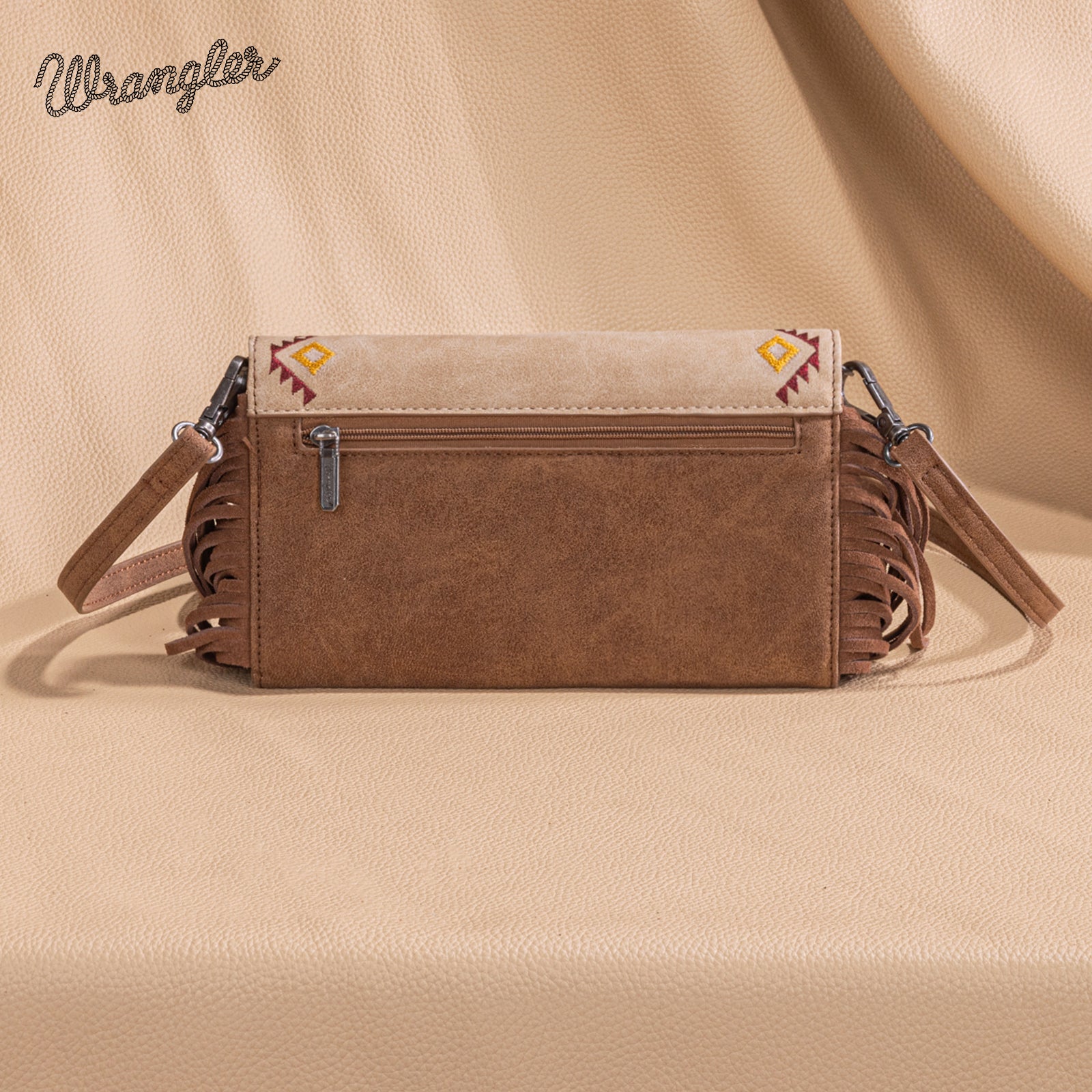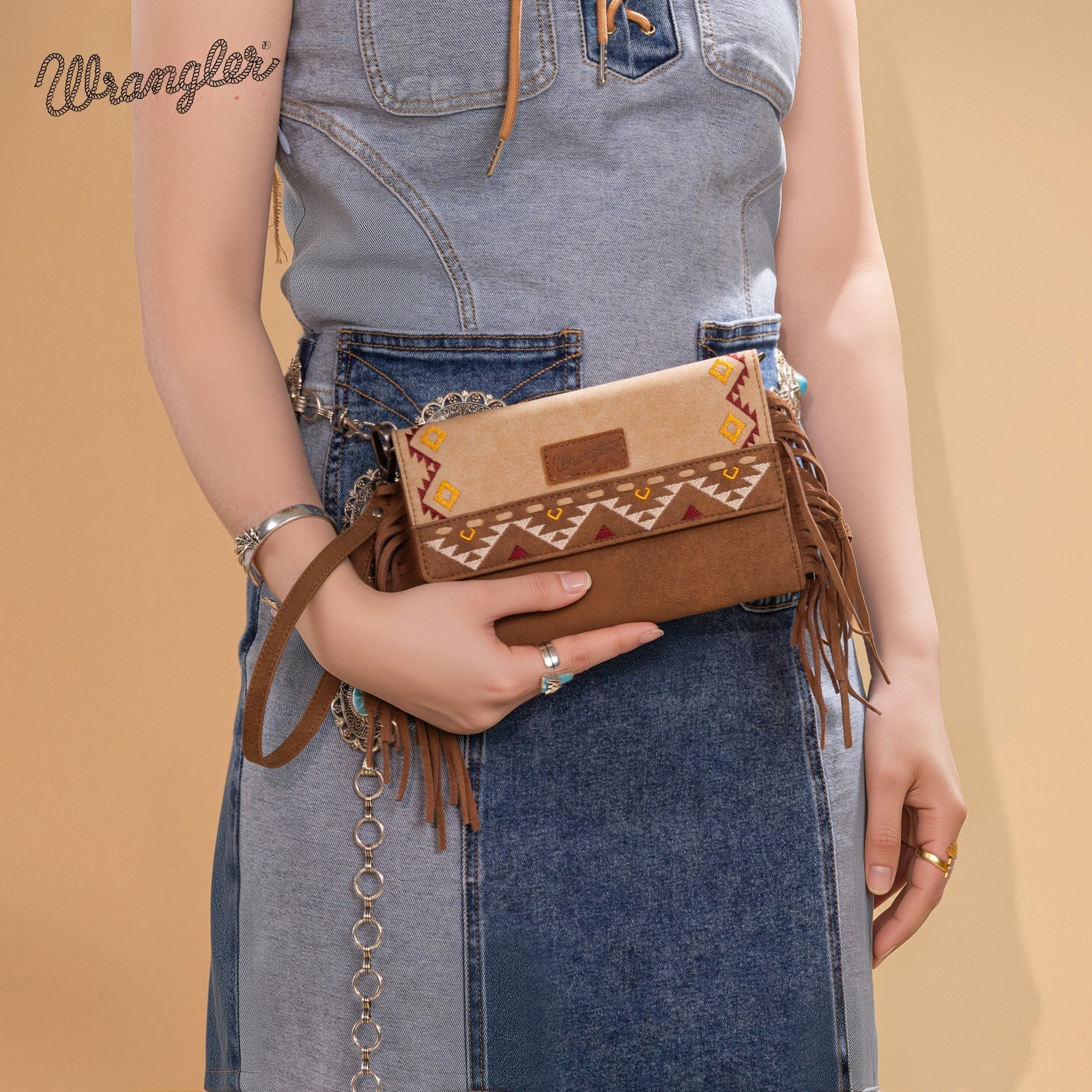 WG233-W018 Wrangler Aztec Embroidered Fringe Wallet/Crossbody -Tan