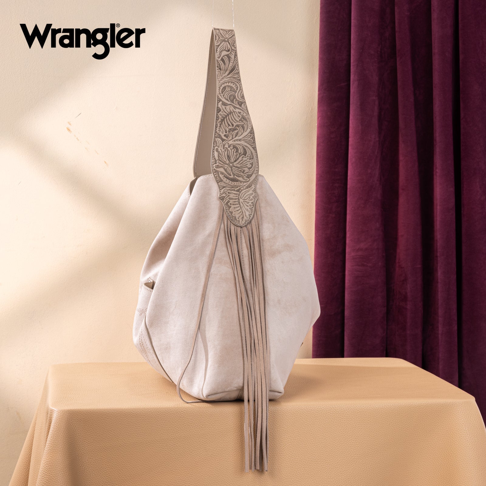 WG239-9182 Wrangler Fringe Floral Tooled Hobo Bag - Beige