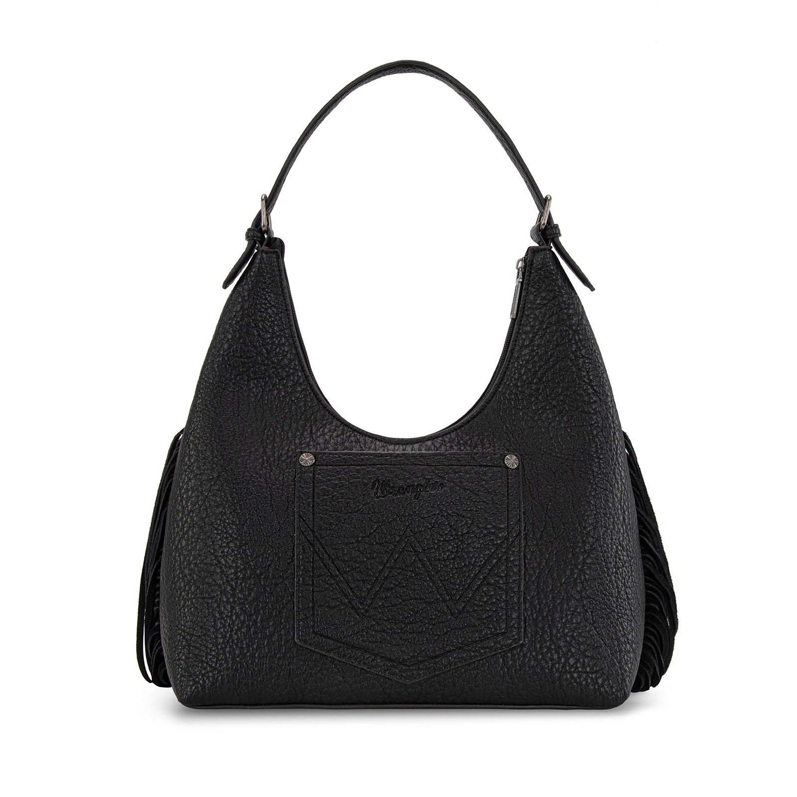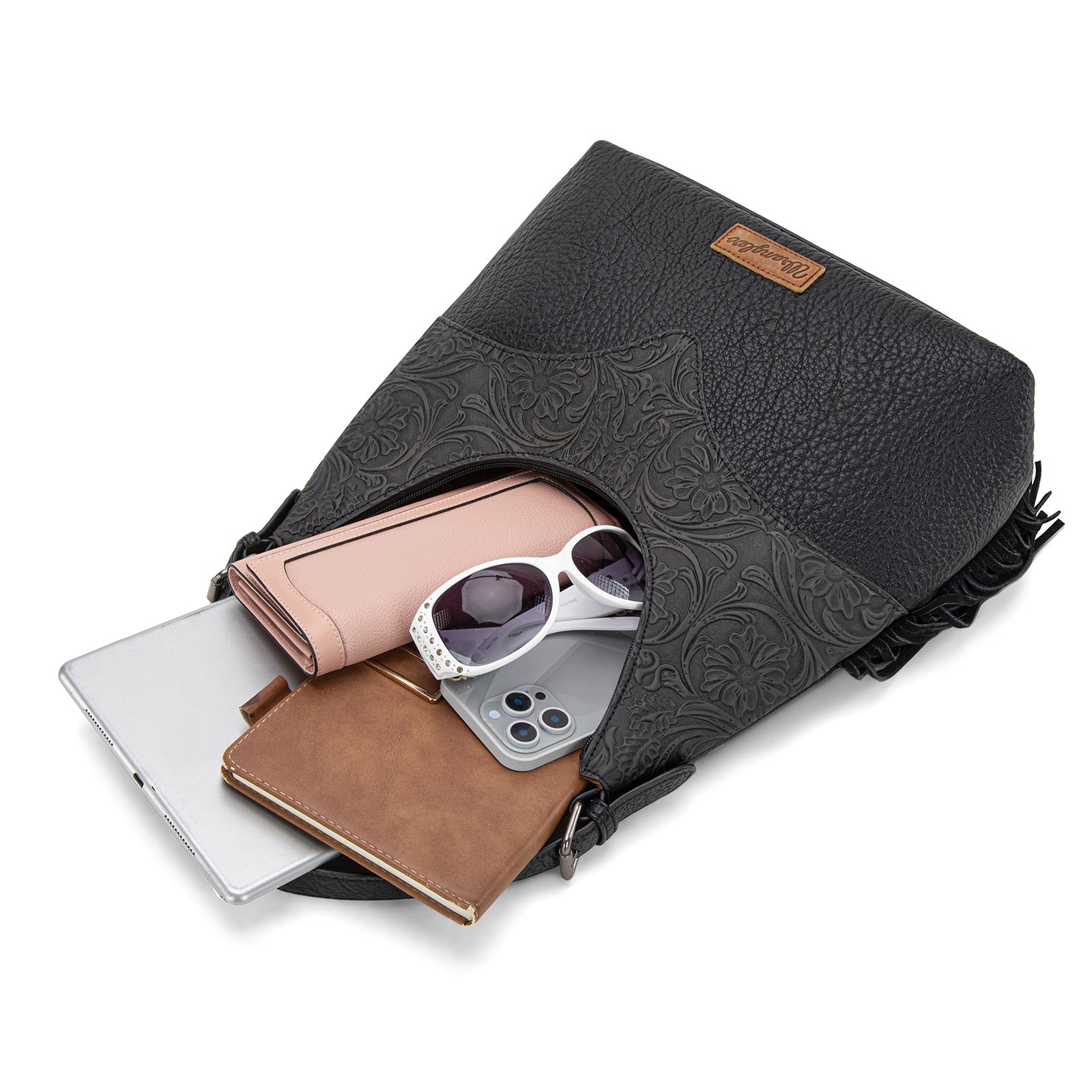 WG265-3027 Wrangler Fringe Floral Tooled Hobo Bag- Black