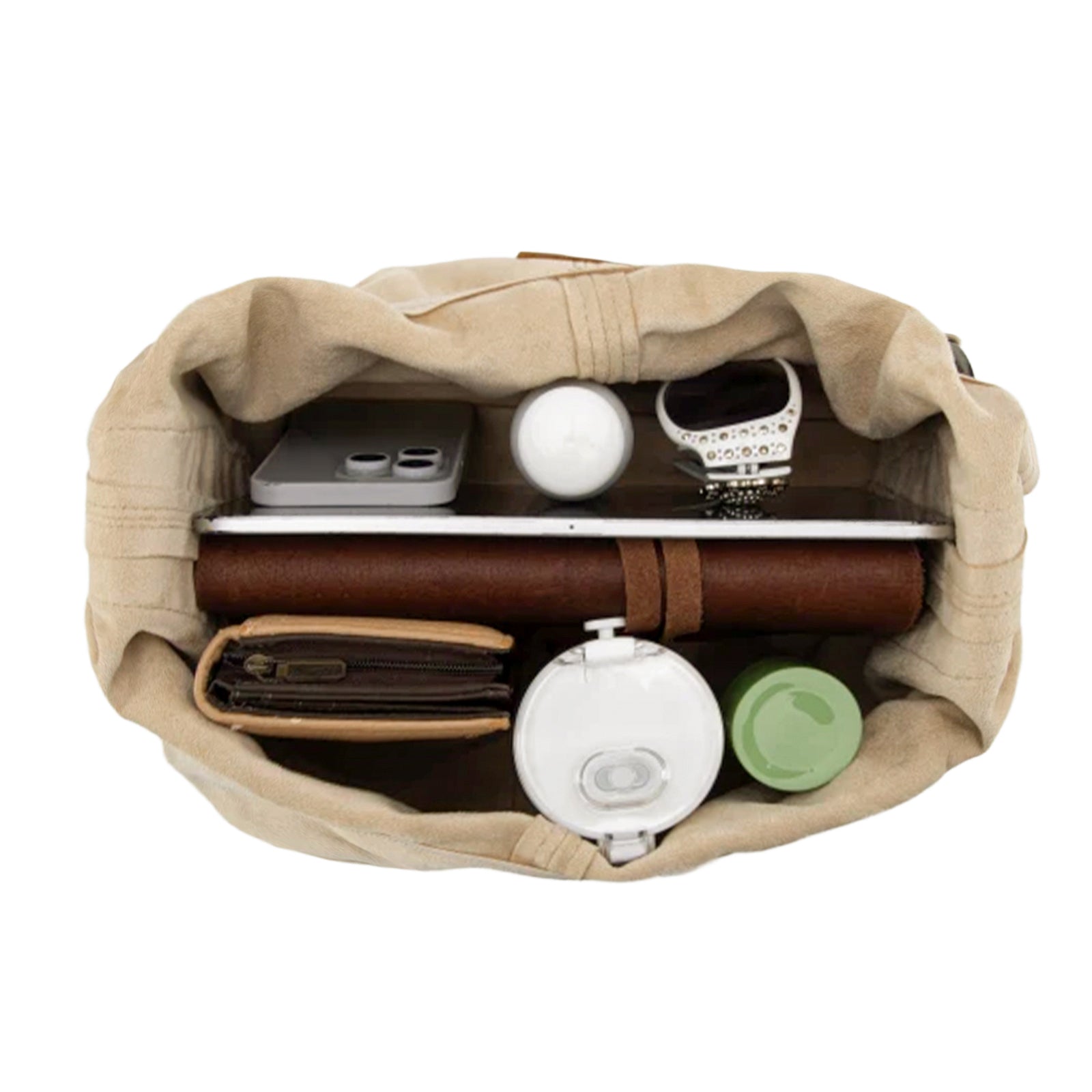 Made of PU leather (suede-like), this hobo bag has: