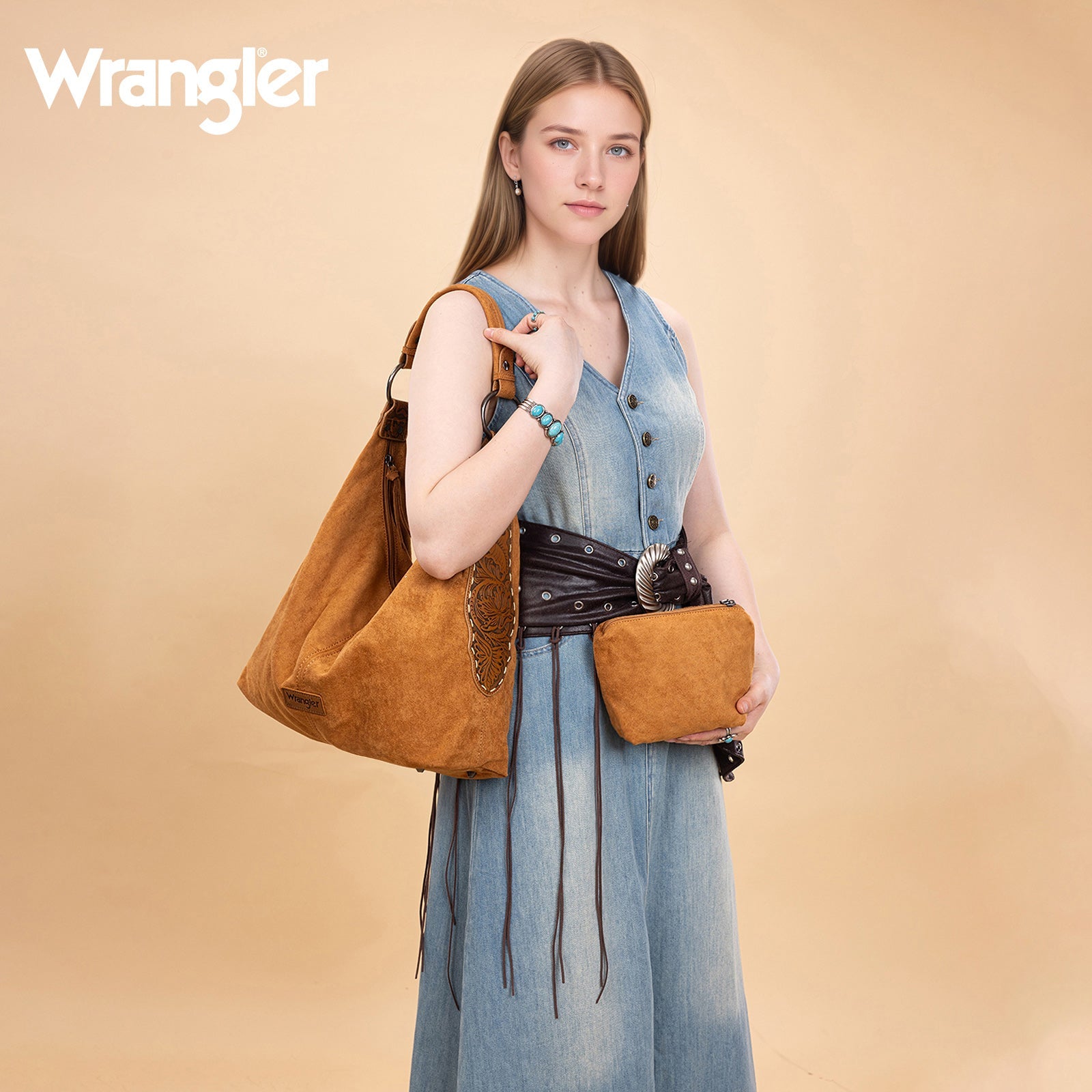 WG276-9182 Wrangler Floral Tooled Hobo Bag with Pouch-Brown