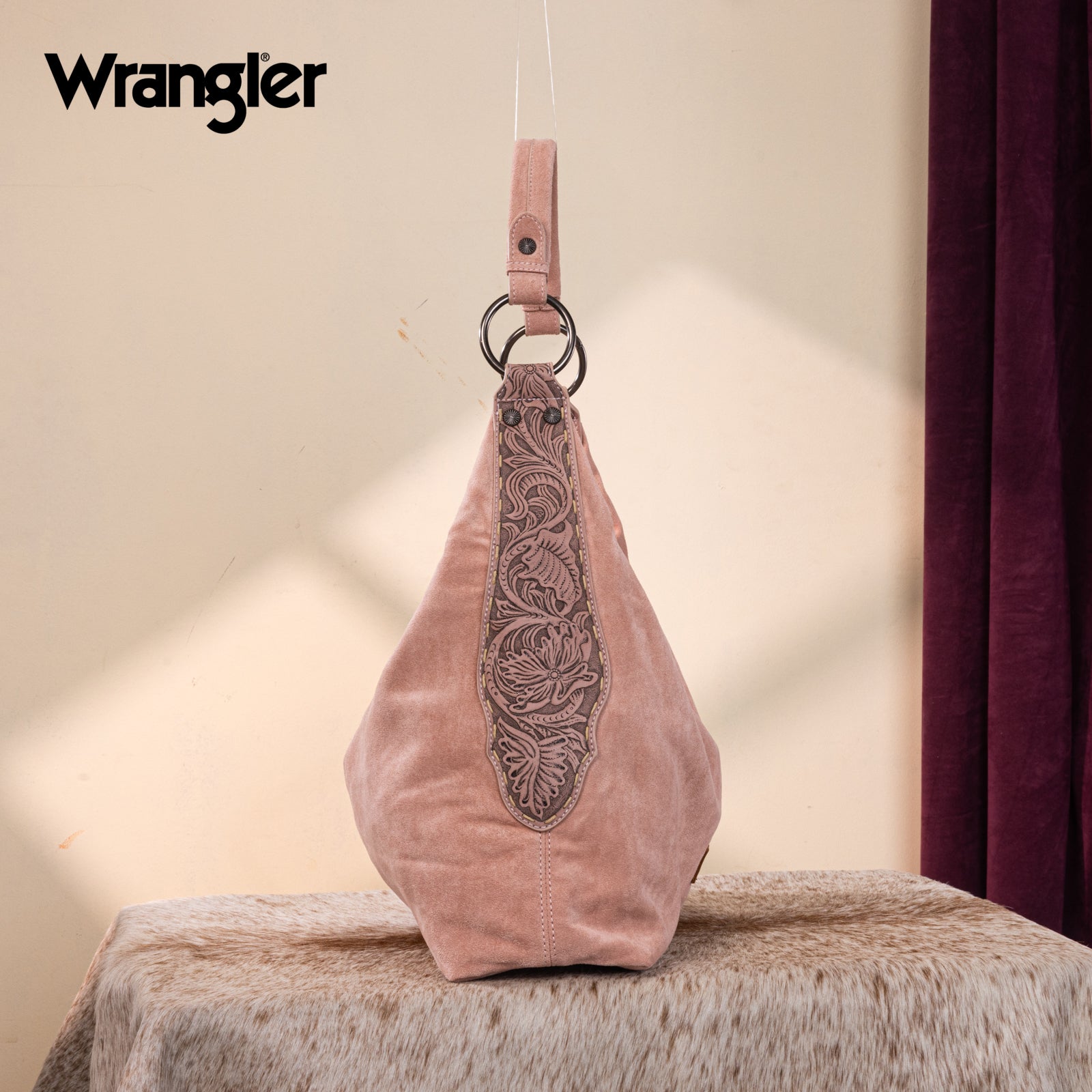 WG276-9182 Wrangler Floral Tooled Hobo Bag with Pouch-Dark Pink