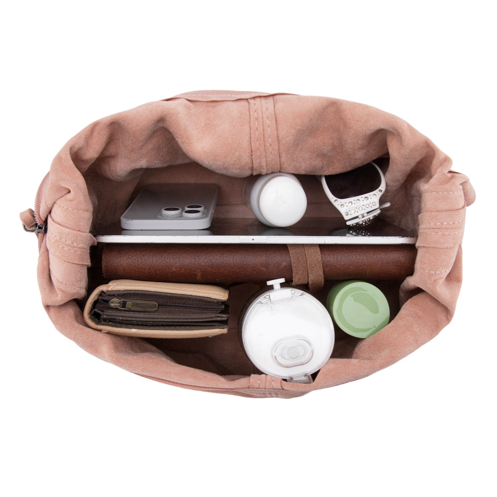 - Inside of the bag includes a detachable zippered pouch