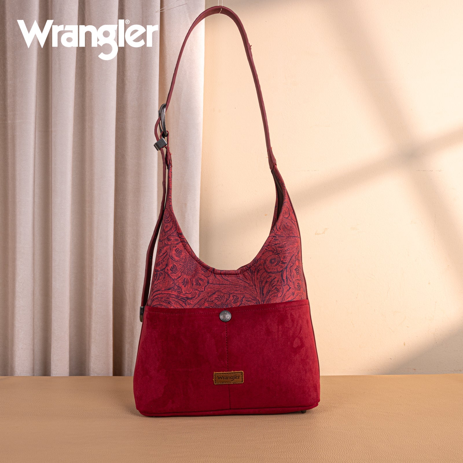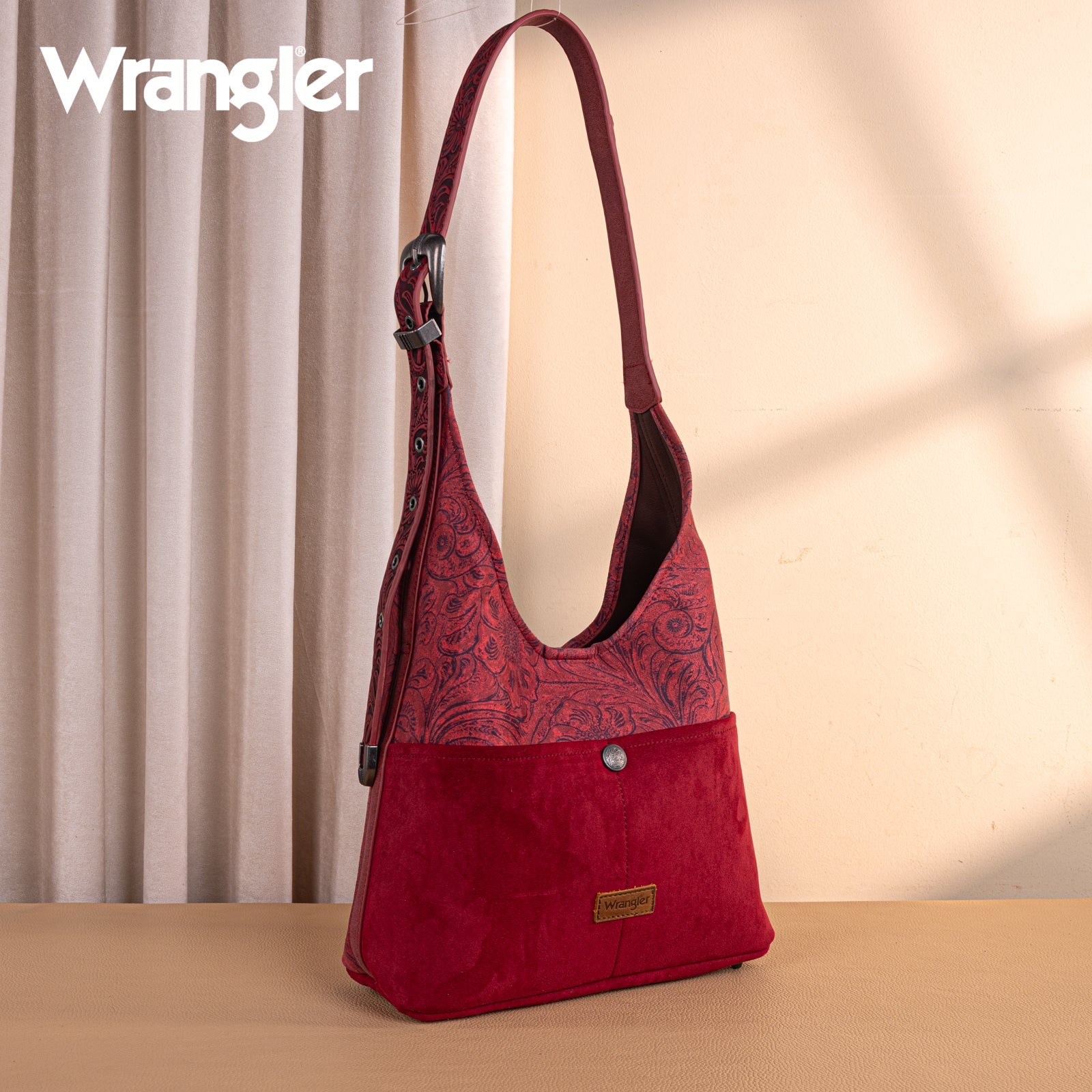 WG277-9182BDY Wrangler Vintage Floral Printed Hobo Bag-Burgundy